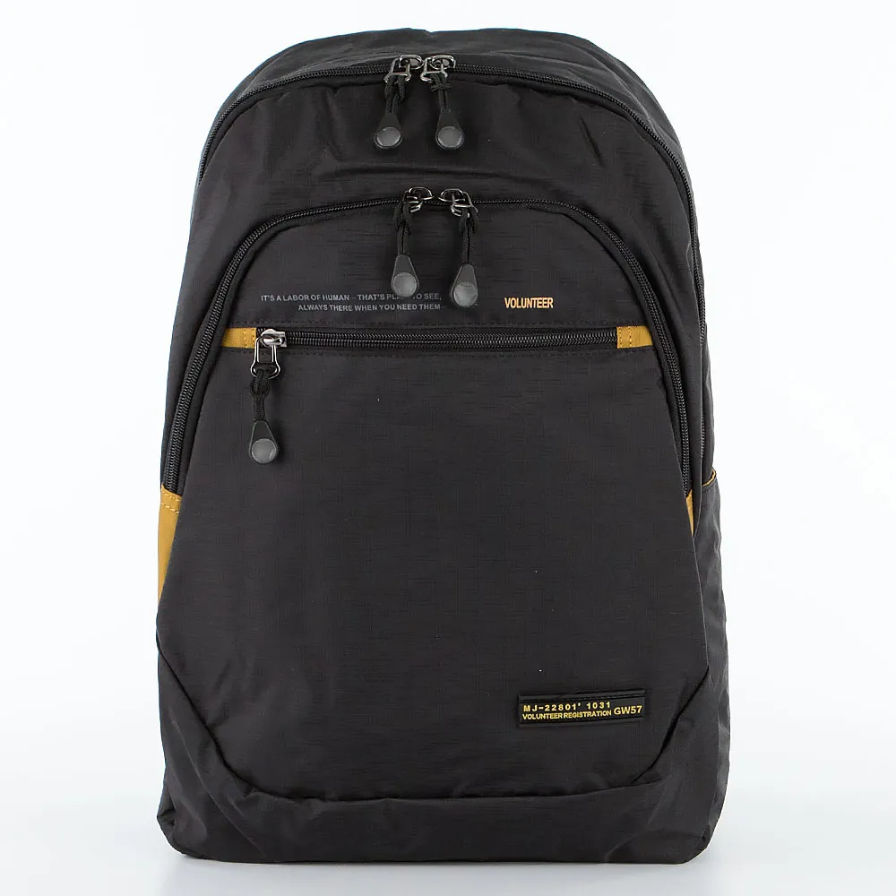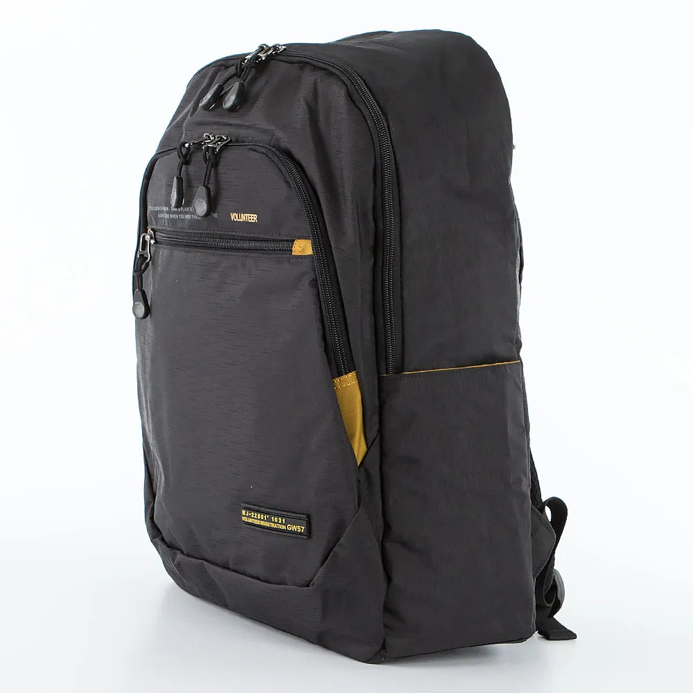 Рюкзак от торговой марки Volunteer из практичного прочного текстильного материала черного цвета. Модель с лямкой-переноской, регулируемыми плечевыми лямками с дышащим верхним слоем. Отделение на молнии. Внутри: текстильная подкладка, карман на молнии, карман с уплотненной стенкой, два накладных кармана. На лицевой стороне – два кармана на молнии. На задней стороне – карман на молнии. По бокам – карман без застежки.