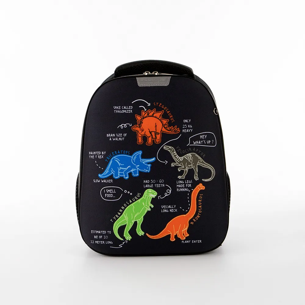 Школьный ранец от торговой марки Ecotope Kids выполнен из прочного износостойкого полиэстера. Формованная лицевая панель декорирована принтом с изображением динозавров; имеется кольцо для крепления брелока. Модель с лямкой, плотной мягкой ручкой, широкими регулируемыми плечевыми лямками. Удобная спинка с мягкими ортопедическими вставками и верхним дышащим сетчатым слоем. Отделение на молнии широко раскрывается благодаря боковым вытачкам на липучках. Внутри: плотная перегородка. По бокам – карман-сетка. Спереди, по бокам и на лямках имеются светоотражатели, что обеспечивает безопасность ребенка в темное время. Дно оснащено прорезиненными накладками для защиты от износа.
