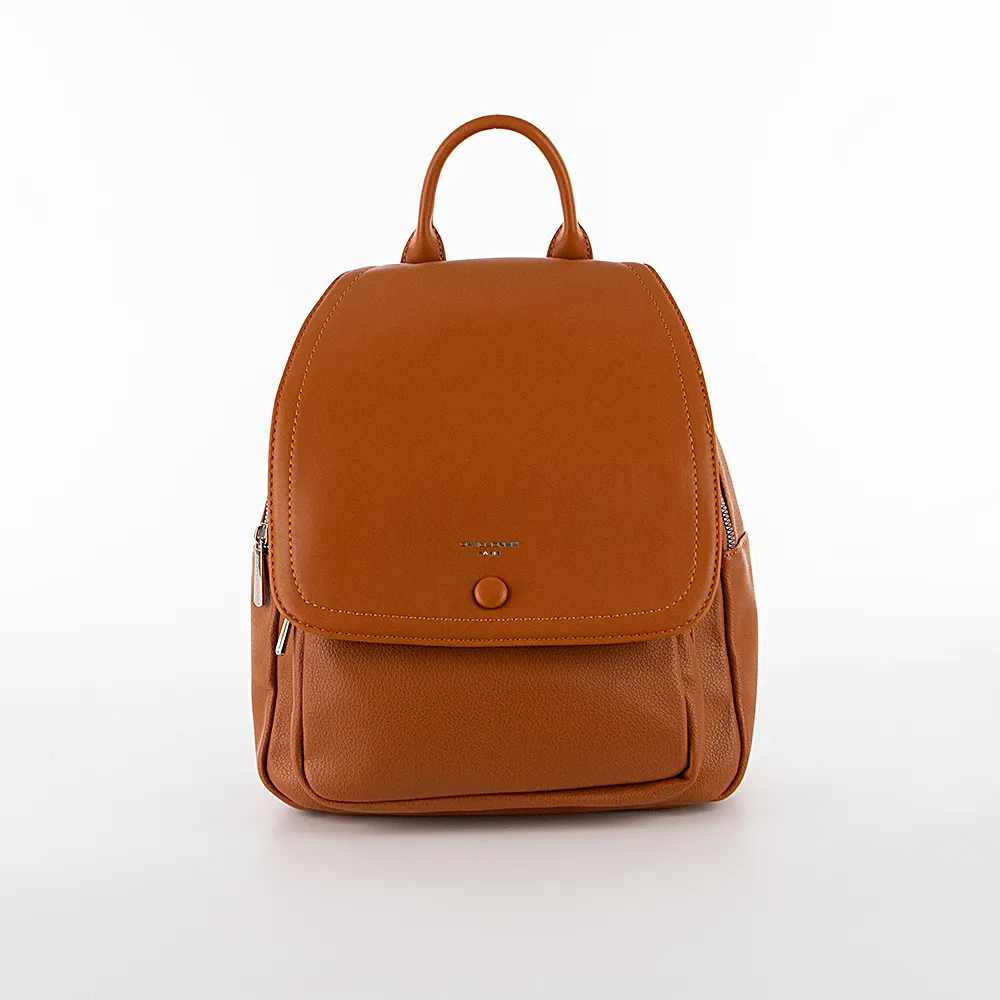 Рюкзак от торговой марки David Jones из искусственной кожи ярко-коньячного цвета. Модель с плотной лямкой-переноской, регулируемыми плечевыми лямками. Клапан на магнитной кнопке закрывает карман на молнии и отделение на молнии. Внутри: текстильная подкладка, карман на молнии, перегородка с карманом на молнии, образующая накладной карман. На задней стороне – карман на молнии.
