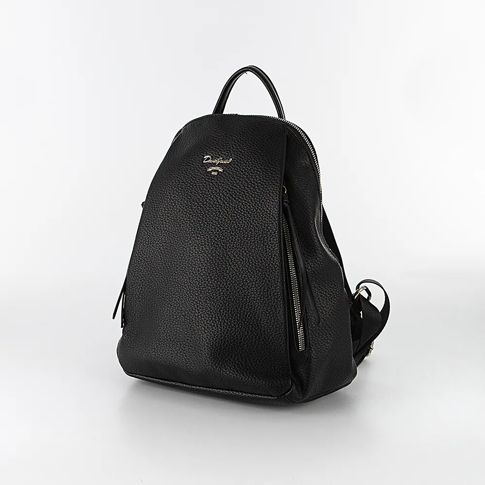 Рюкзак от торговой марки David Jones из искусственной кожи черного цвета. Модель с лямкой-переноской, регулируемыми плечевыми лямками. Отделение на молнии. Внутри: фирменная подкладка, карман на молнии, накладной карман. На лицевой стороне – два кармана на молнии. На задней стороне – карман на молнии.