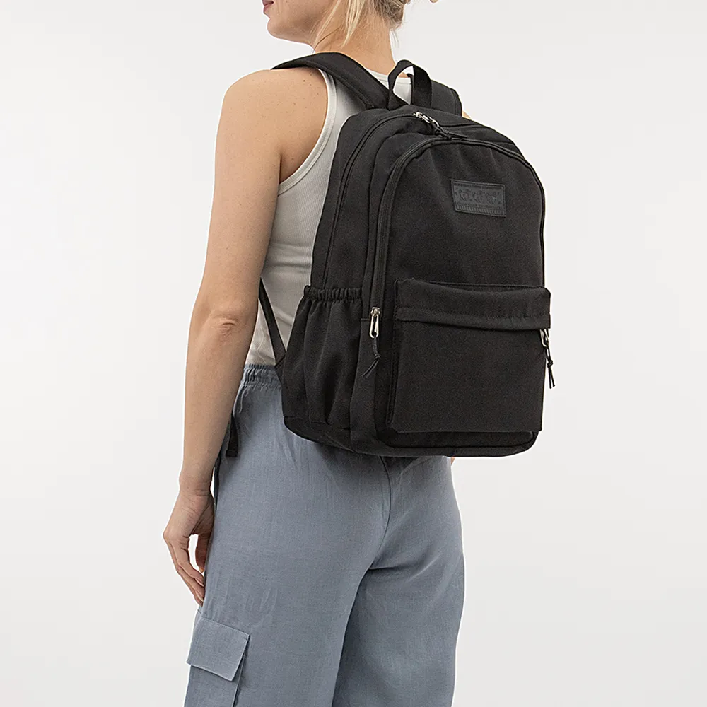 Рюкзак от торговой марки Valigetti из текстильного материала черного цвета. Модель с лямкой-переноской и широкими плотными регулируемыми плечевыми лямками. Два отделения на молнии. В основном отделении: текстильная подкладка, накладной карман с уплотненной стенкой для ноутбука. На лицевой стороне – накладной карман молнии. По бокам – накладной карман на резинке. На спинке имеется карман-антивор на молнии.