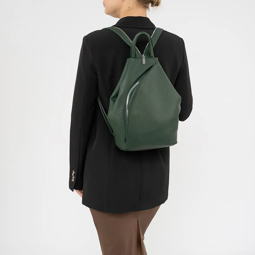 Рюкзак от торговой марки Passo Avanti из искусственной кожи синего цвета. Модель с двумя ручками, регулируемыми плечевыми лямками, соединенными молнией (для ношения на одном плече). Отделение на молнии. Внутри: текстильная подкладка, карман на молнии, накладной карман. На лицевой и задней сторонах - карман на молнии.