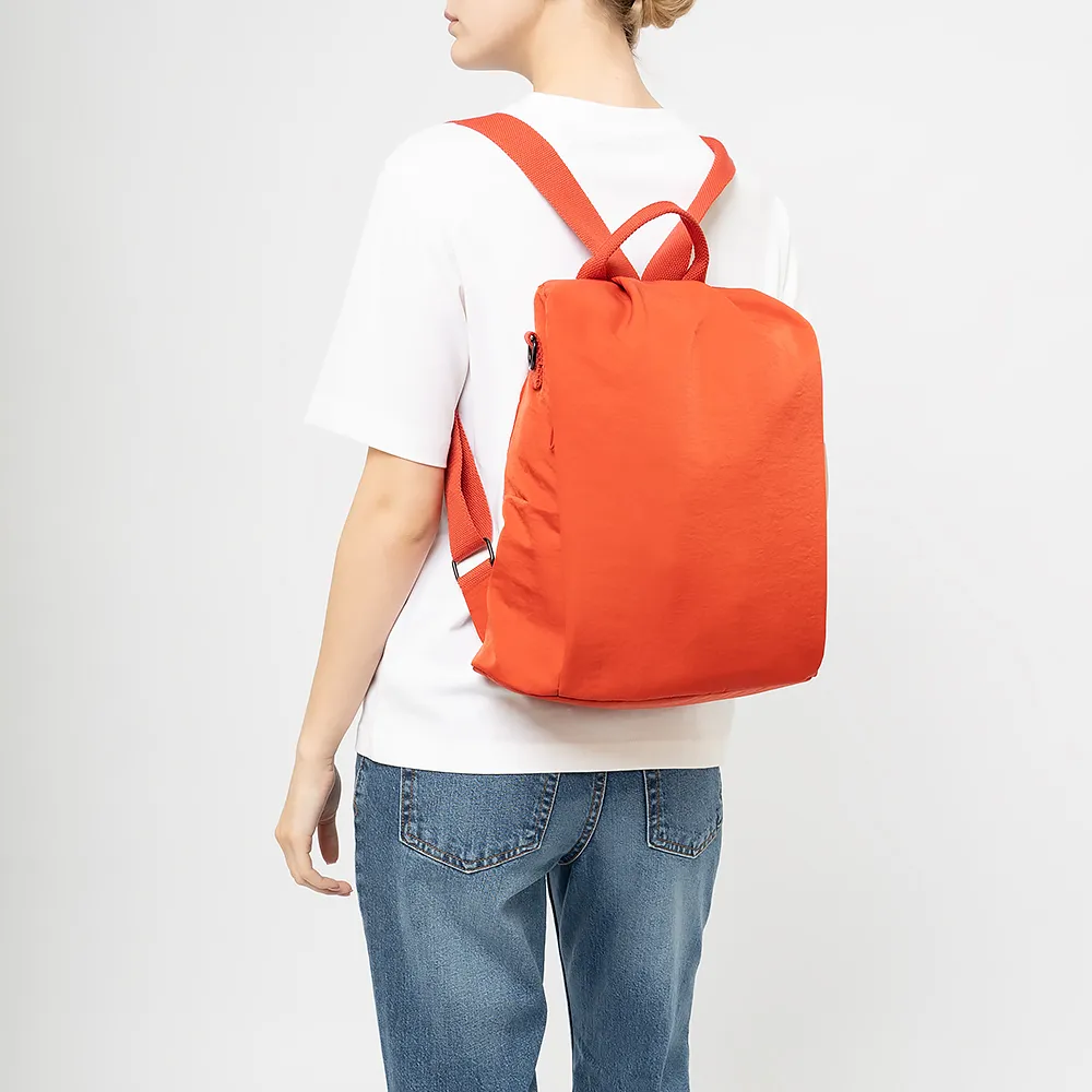 Рюкзак от торговой марки Ecotope из текстильного материала красного цвета. Модель с лямкой-переноской, регулируемыми плечевыми ремнями и съемным плечевым ремнем. Отделение на молнии. Внутри: текстильная подкладка. По бокам - накладной карман без застежки.