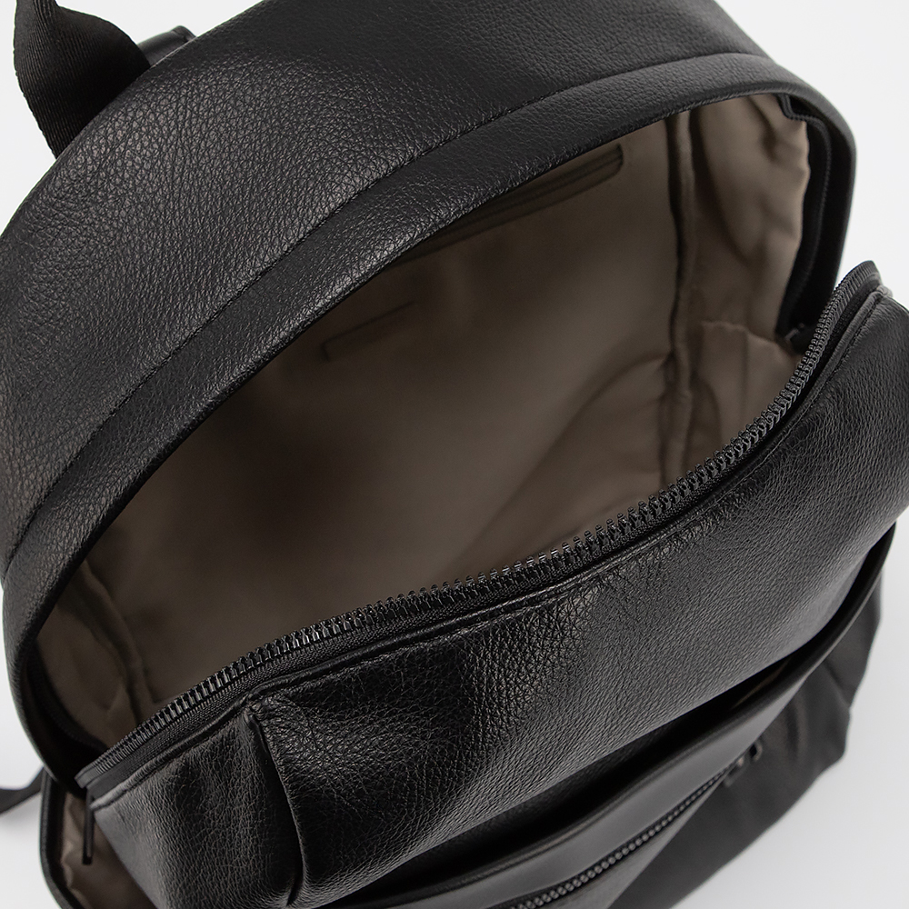 Рюкзак от торговой марки David Jones выполнен из искусственной кожи черного цвета. Модель с лямкой для переноски и регулируемыми плечевыми ремнями. Отделение на молнии. Внутри: текстильная подкладка, карман на молнии, накладной карман. На лицевой стороне - карман на молнии и карман на магнитной кнопке. По бокам - карман без застежки. На задней стороне - карман на молнии.