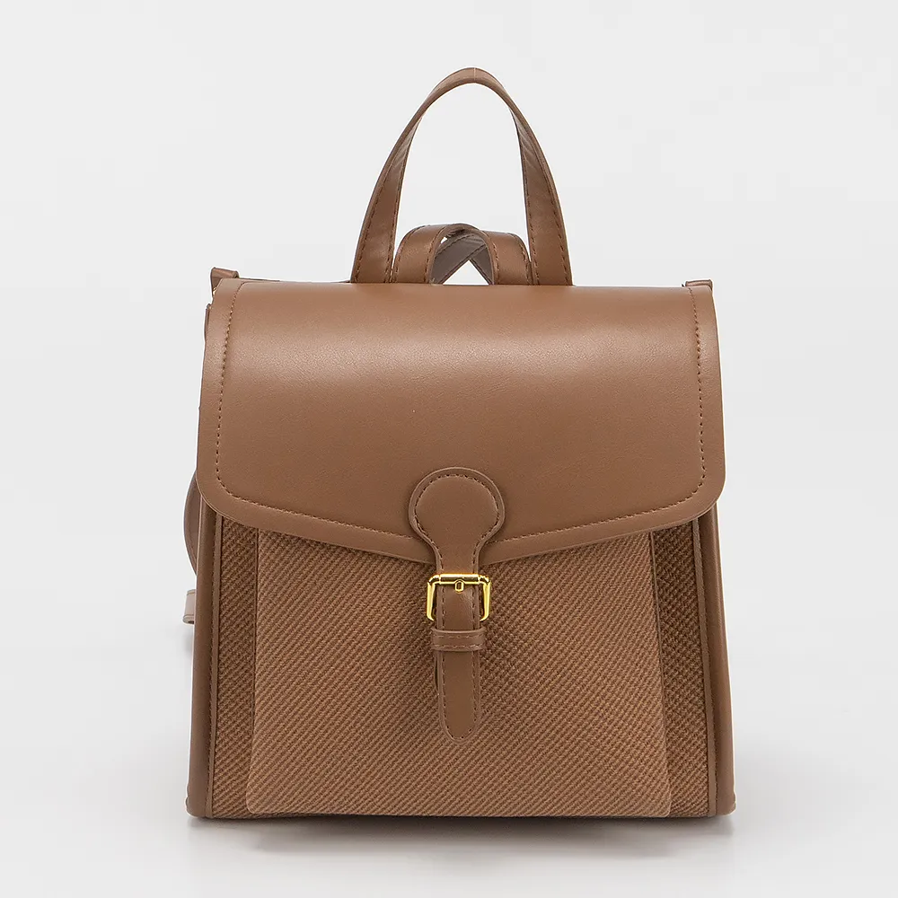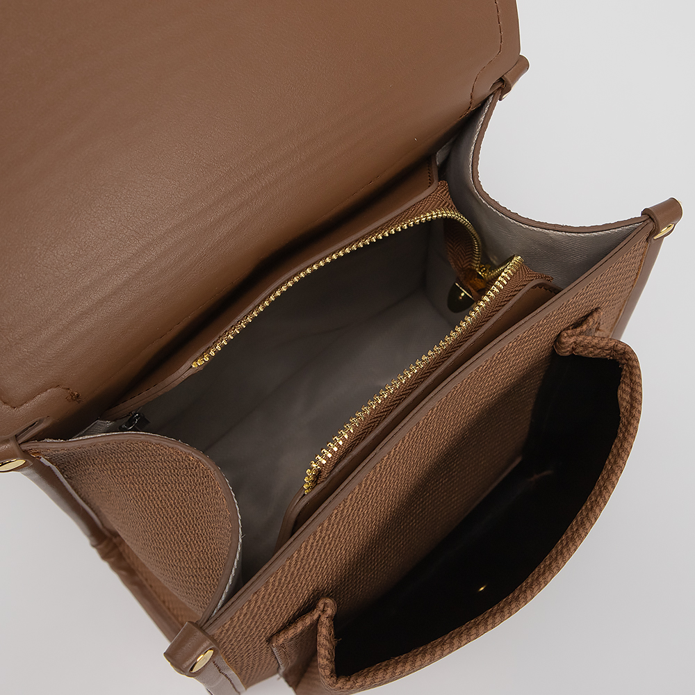 Рюкзак от торговой марки Valigetti выполнен из искусственной кожи и текстильного материала коричневого цвета. Модель с ручкой и двумя регулируемыми плечевыми лямками. Клапан закрывает отделение на молнии и накладной карман. Внутри: текстильная подкладка.