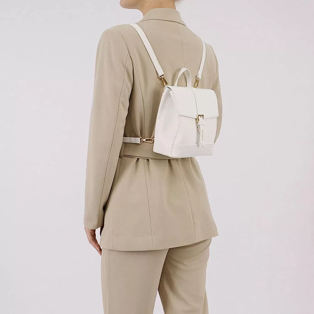 Рюкзак оснащён лямкой-переноской и съёмными плечевыми лямками, которые можно использовать как плечевой ремень. Он закрывается клапаном на магнитной кнопке, а клапан декорирован ремешком с пряжкой.
