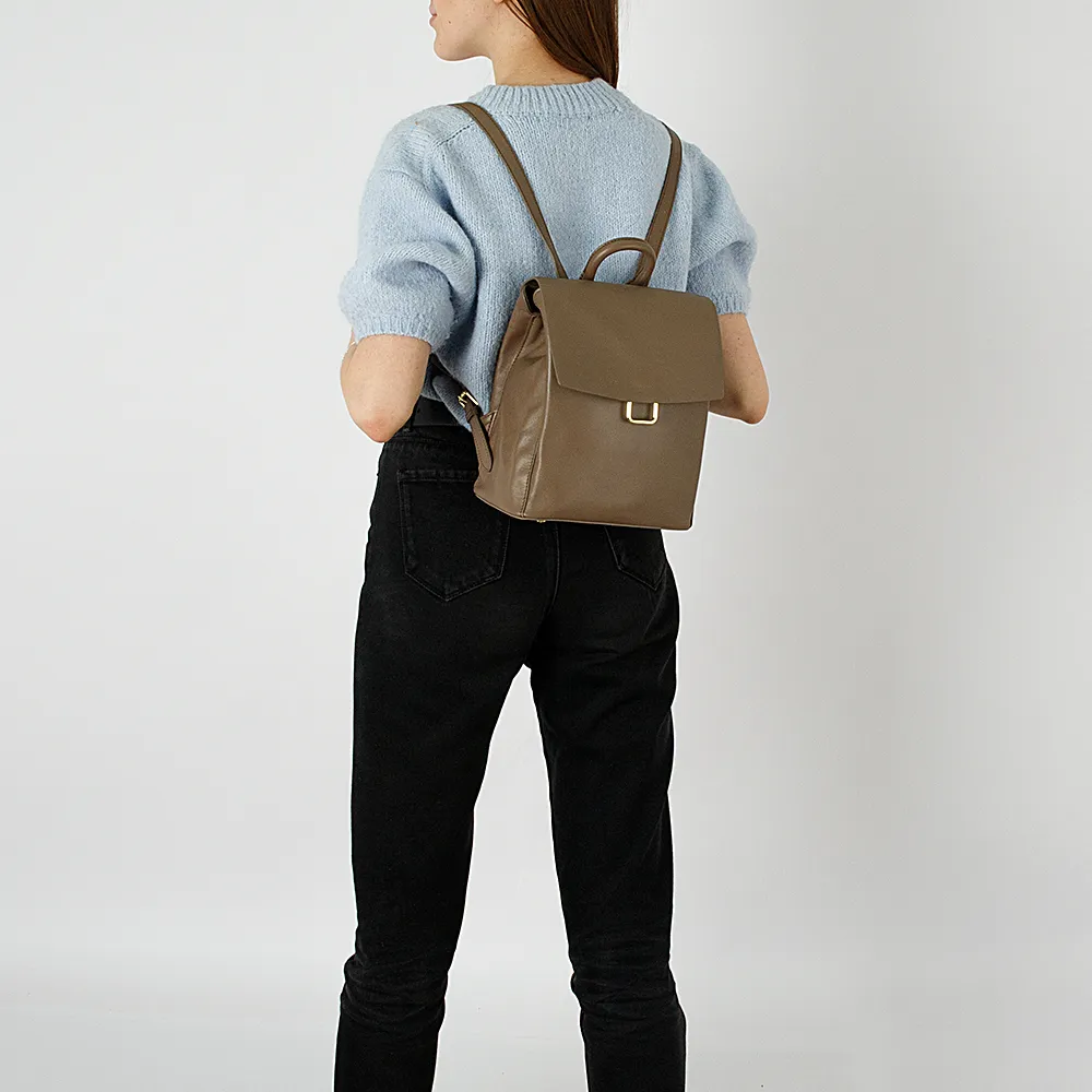 Рюкзак от торговой марки Francesco Molinary из натуральной кожи кофейного цвета. Компактная небольшая модель с лямкой-переноской и р егулируемыми плечевыми лямками. Закрывается клапаном на магнитной кнопке. Три отделения; крайние фиксируются магнитной кнопкой. Среднее отделение на молнии. Внутри: фирменная подкладка, карман на молнии, накладной карман. На задней стороне – вертикальный карман на молнии. Дно оснащено металлическими ножками для защиты от износа.