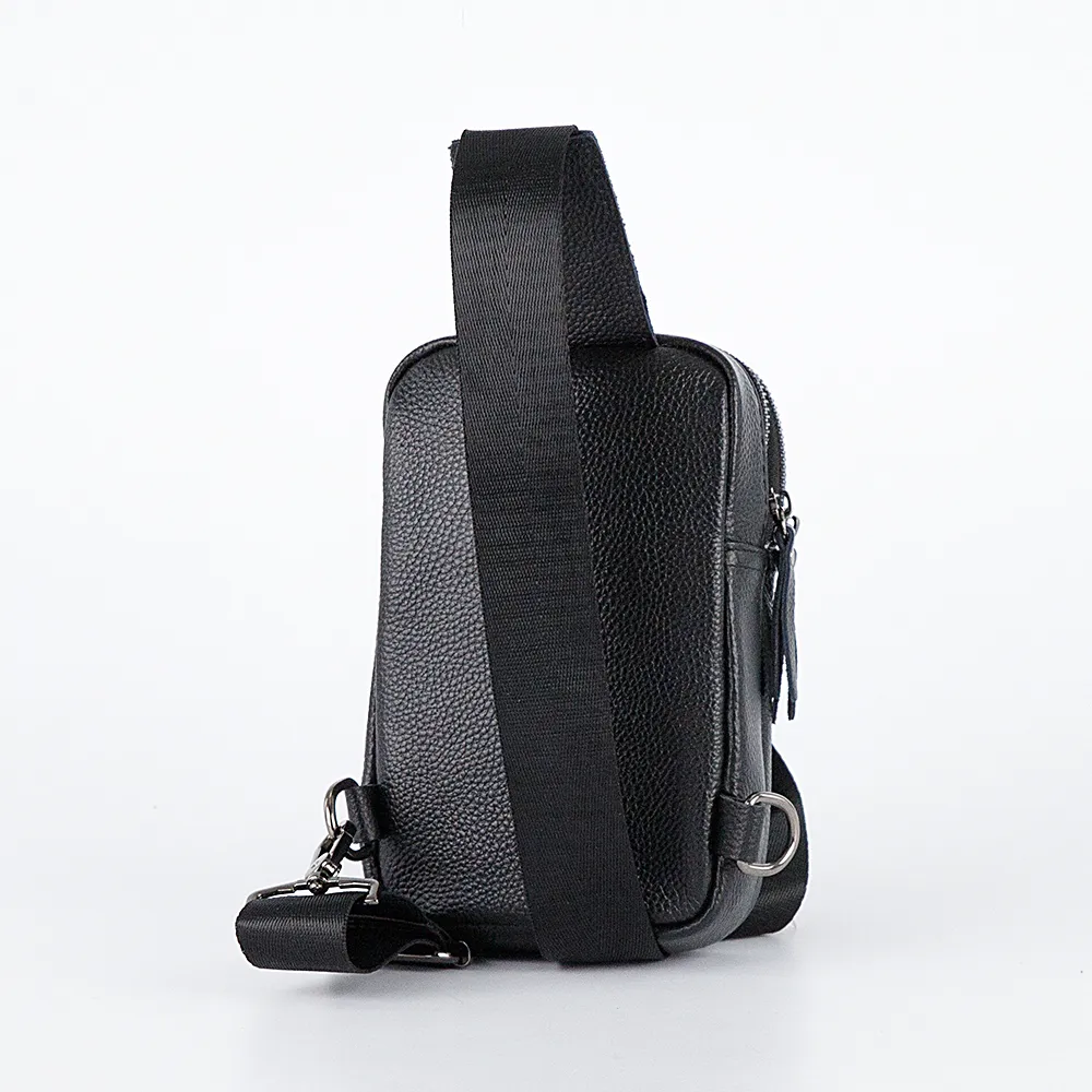 Компактный однолямочный рюкзак от торговой марки Poshete из натуральной кожи черного цвета. Модель с несъемной плечевой лямкой, кото рая снизу крепится карабином для ношения как на правом, так и на левом плече. Два отделения на молнии, с фирменной подкладкой. В заднем отделении – накладной карман.