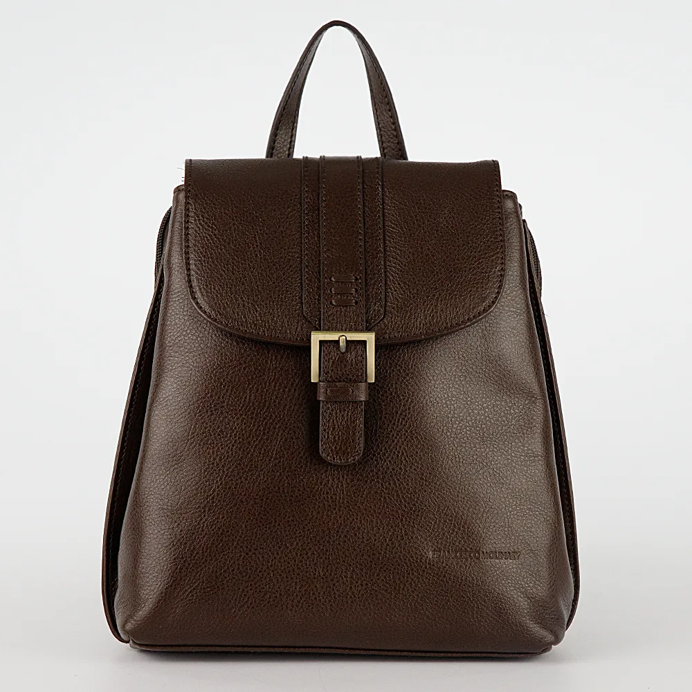 Превосходный повседневный рюкзак от торговой марки Francesco Molinary из натуральной кожи коричневого цвета. Компактная модель средн его размера с лямкой-переноской и регулируемыми плечевыми лямками. Закрывается клапаном на магнитной кнопке; клапан декорирован пряжкой. Отделение на молнии, которая по бокам фиксируется кнопками. Внутри: фирменная подкладка, средник и карман на молнии, два накладных кармана. На задней стороне – карман на молнии.