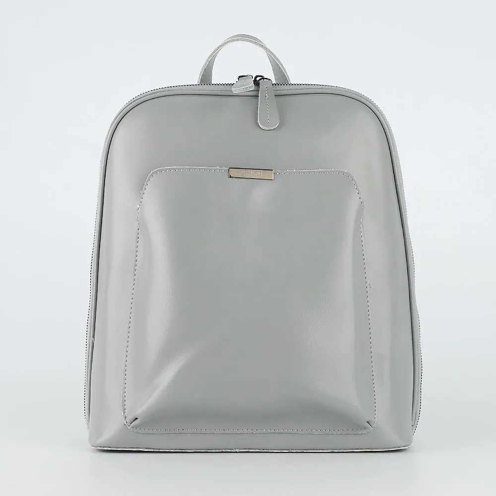 Сумка-рюкзак от торговой марки Poshete выполнена из натуральной кожи светло-серого цвета. Имеется лямка-переноска и регулируемые плечевые лямки, которые при стягивании превращаются в плечевой ремень с наплечником. Отделение на молнии по трем сторонам, что обеспечивает комфортный доступ. Внутри: фирменная подкладка, карман на молнии, два накладных кармана. На задней стороне – прорезной карман на молнии. На передней стороне – накладной карман.
