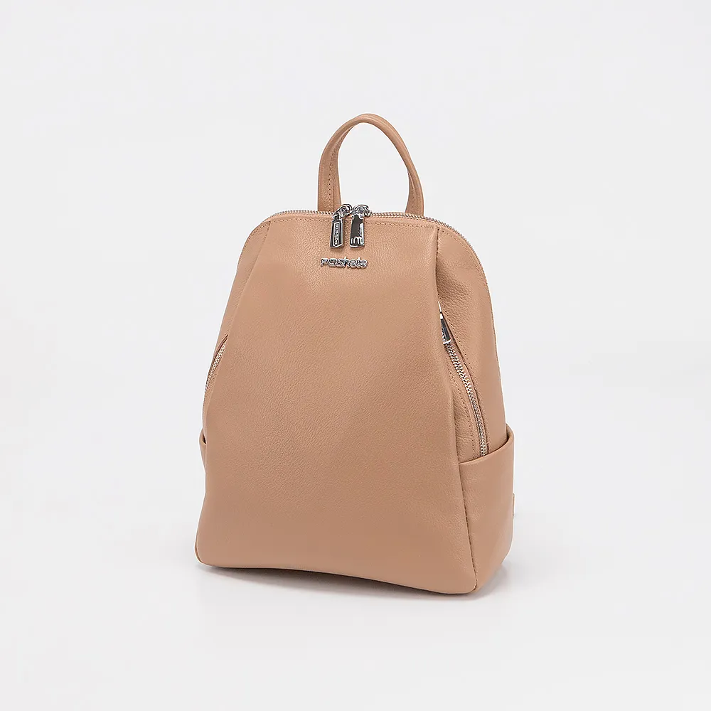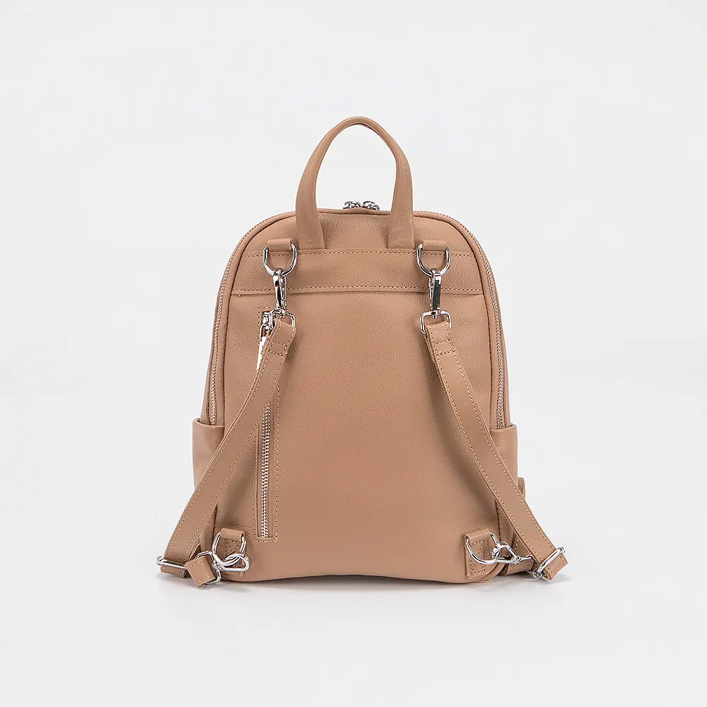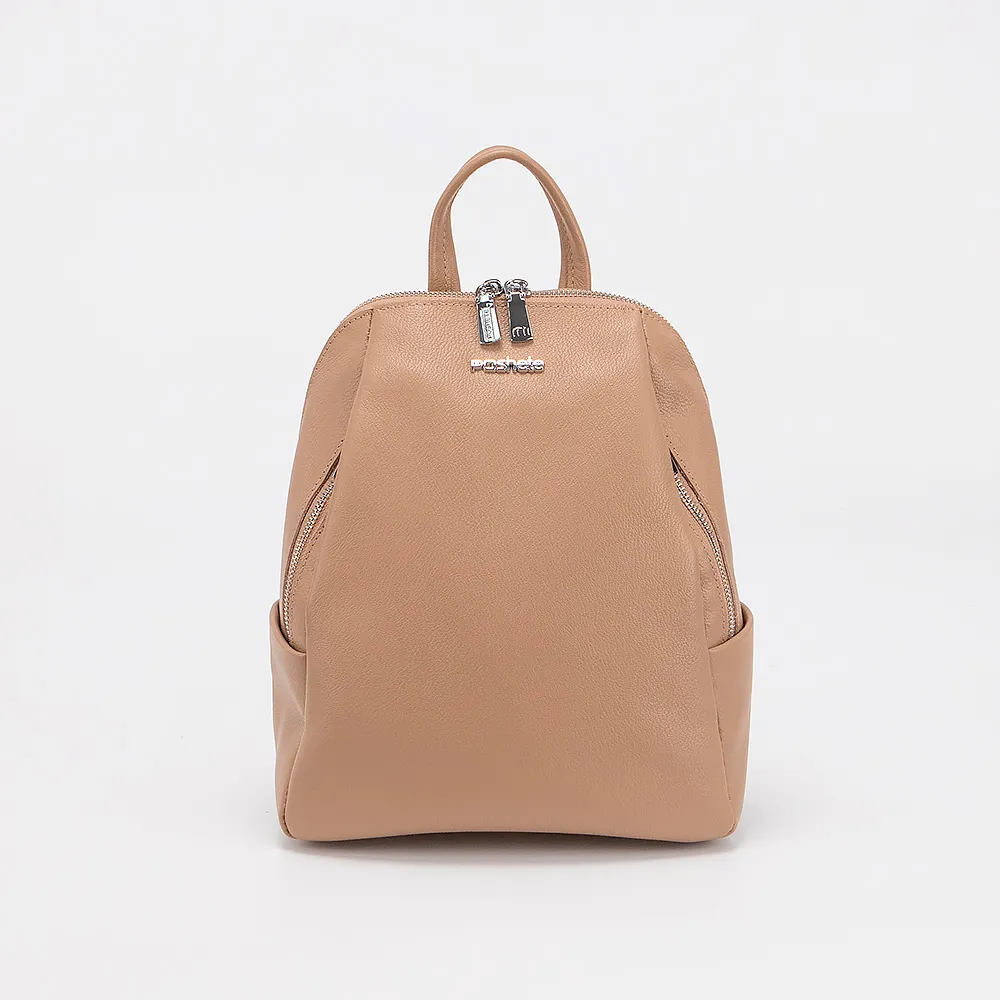 Сумка-рюкзак от торговой марки Poshete из натуральной кожи кофейного цвета с тиснением под рептилию на лицевой стороне. Компактная модель с плотной лямкой-переноской и съемными регулируемыми плечевыми лямками, которые стягиваются в плечевой ремень. Отделение на молнии по трем сторонам, что обеспечивает удобный доступ. Внутри: фирменная подкладка, карман на молнии и накладной карман. На лицевой стороне – два кармана на молнии, на задней – вертикальный карман на молнии. По бокам – карман без застежки. Дно оснащено металлическими ножками для защиты от износа.