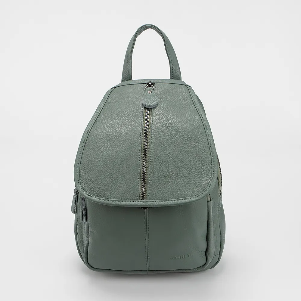 Рюкзак от торговой марки Poshete из натуральной кожи голубого цвета. Компактная модель с лямкой-переноской и регулируемыми плечевыми лямками, соединяемыми молнией в одну для ношения на одной лямке. Закрывается клапаном на магнитной кнопке, на клапане - вертикальный карман на молнии. Два отделения на молнии, с фирменной подкладкой. В основном - карман на молнии, два накладных кармана. На задней стороне - карман на молнии.
