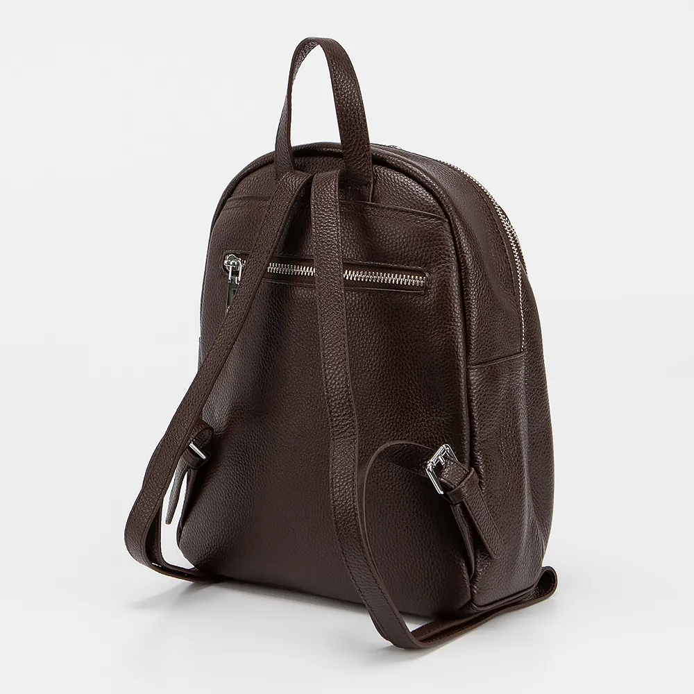 Рюкзак от торговой марки Poshete выполнен из натуральной кожи коричневого цвета. Модель с лямкой для переноски и регулируемыми плечевыми ремнями. Отделение на молнии. Внутри: текстильная подкладка, карман на молнии, накладной карман. С лицевой и задней стороны - карман на молнии.