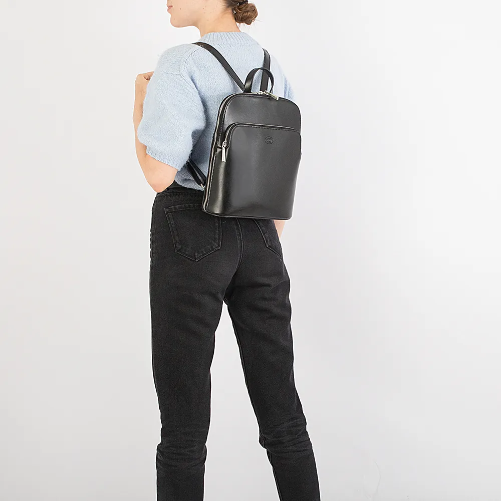 Стильный городской рюкзак от торговой марки Francesco Molinary выполнен из гладкой натуральной кожи черного цвета. Лаконичная модель с качественной отделкой имеет ручку переноску и регулируемые плечевые лямки. Отделение на молнии по трем сторонам, что обеспечивает широкое раскрытие с комфортным доступом. Внутри – фирменная подкладка и карманы. На лицевой стороне – накладной карман на молнии, на спинке – прорезной карман на молнии.