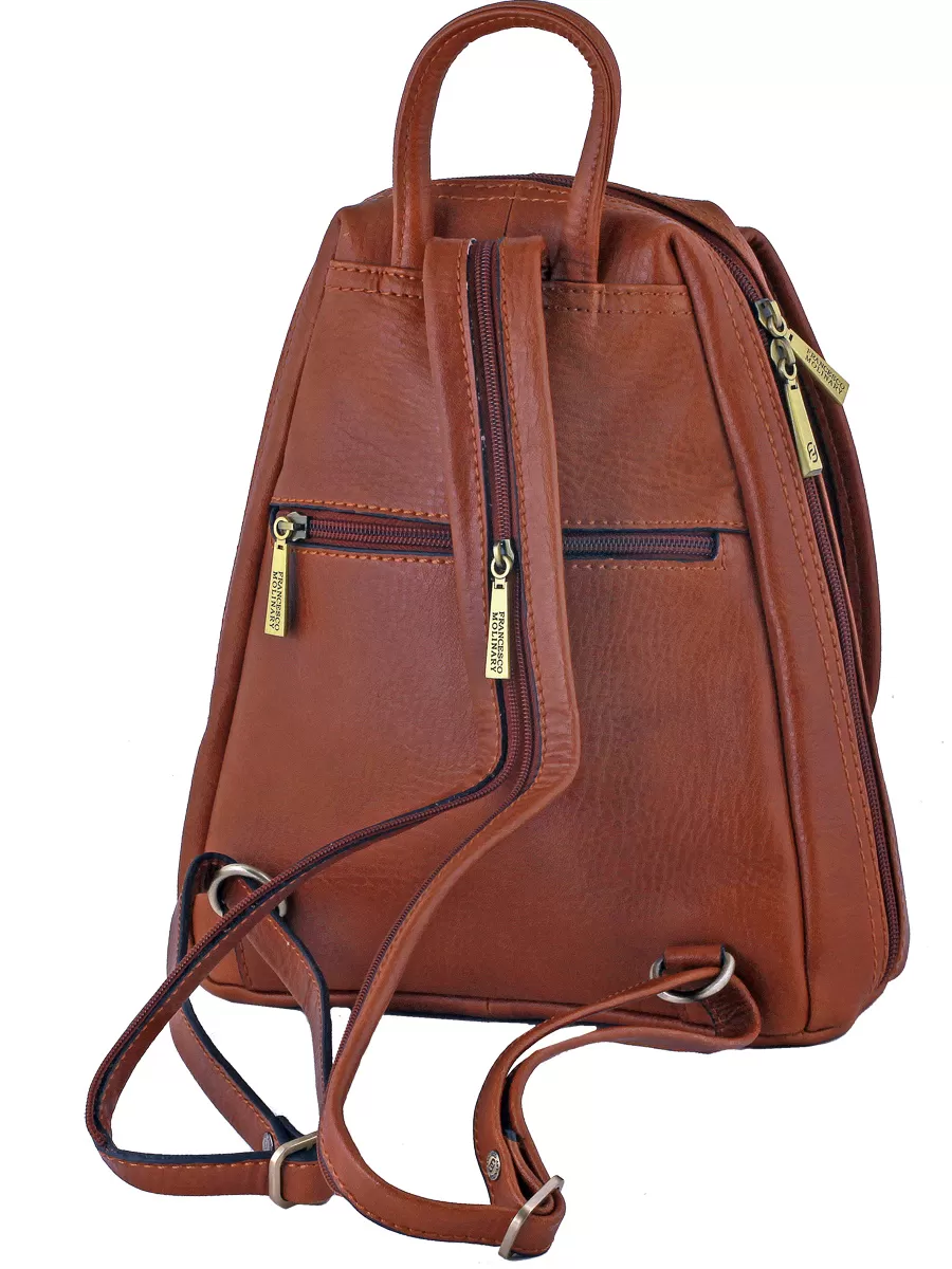 Компактный кожаный рюкзачок Francesco Molinary из высококлассной гладкой плотной кожи. Оригинальный замок на пружинке придает изделию элегантность. В основном отделении есть кармашки для мобильного телефона и других некрупных предметов. А ключница на кнопке поможет Вам быстро найти ключи. Особое практичное назначение несет карман на молнии сзади. Вы можете быть уверены, что ценные вещи в нем будут надежно спрятаны. Кожаные плечевые лямки соединены молнией, что позволяет Вам носить рюкзак как на одном, так и на двух плечах.
