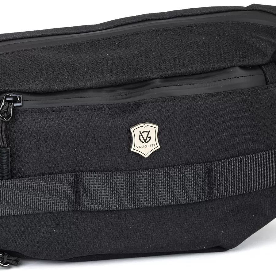 Мужская поясная сумка бренда Valigetti из текстиля. Имеет вшитую регулируемую текстильную лямку. Внутри основного отделения с подрезиненной молнией есть карман на молнии. На лицевой стороне есть карман на подрезиненной молнии