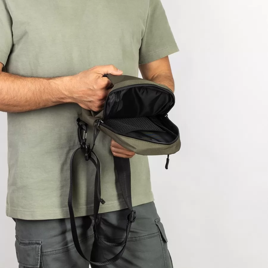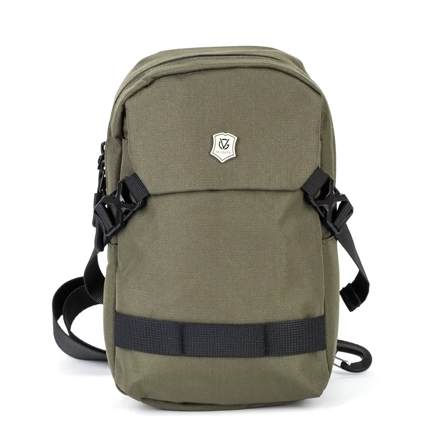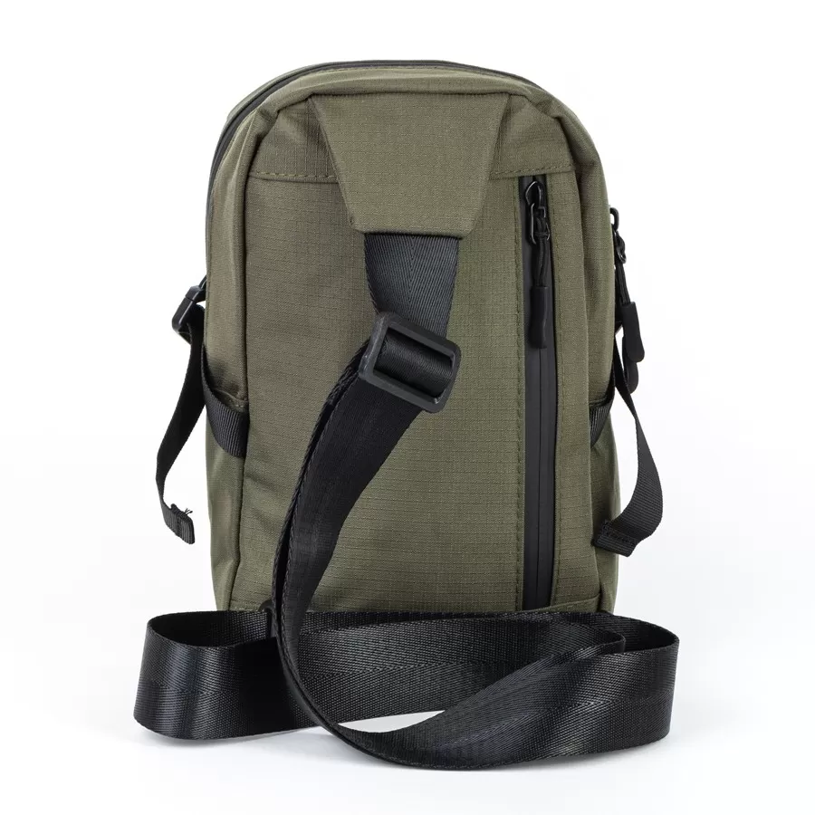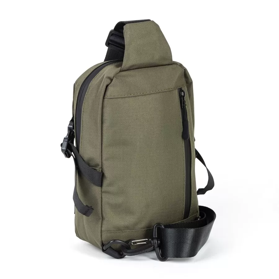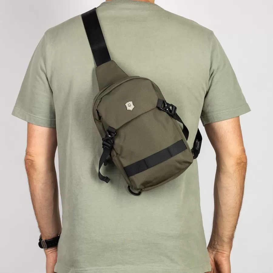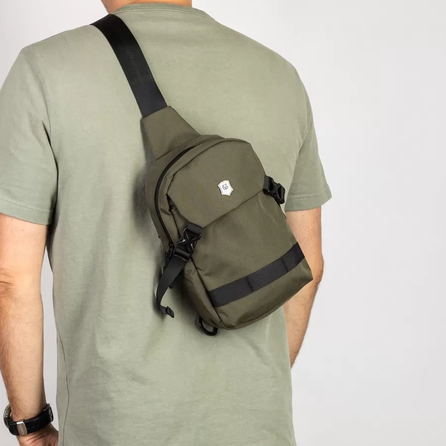 Мужской однолямочный рюкзак бренда Valigetti из текстиля оливкового цвета. Имеет вшитую регулируемую плечевую текстильную лямку. Внутри основного отделения на подрезиненной молнии есть также сетчатый карман. На лицевой стороне есть кармана, защищенный клапаном на затягивающихся замках. На задней стороне есть карман на подрезиненной молнии