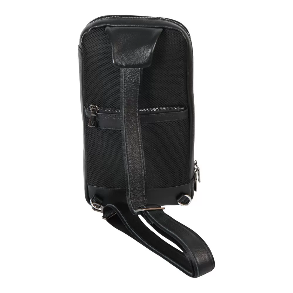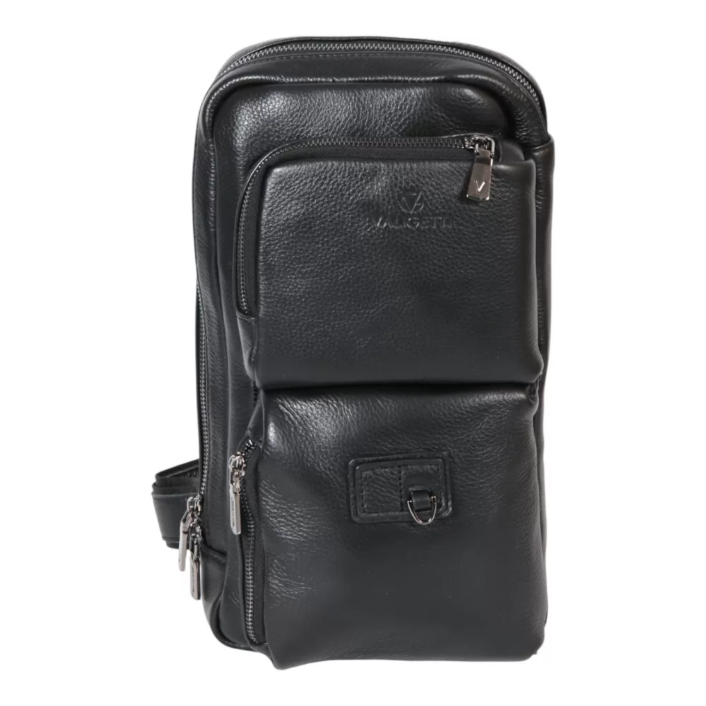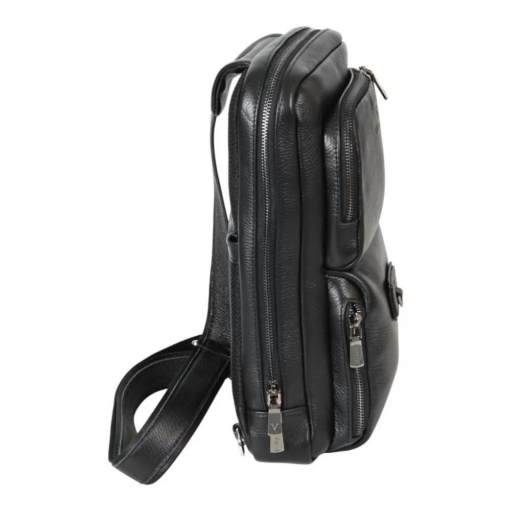 Однолямочный рюкзак от Valigetti черного цвета из натуральной кожи. У модели есть 1 основное отделение на молнии, карман на молнии и открытый карман. На лицевой стороне 2 внешних кармана на молнии. На задней стороне карман для быстрого доступа на молнии.