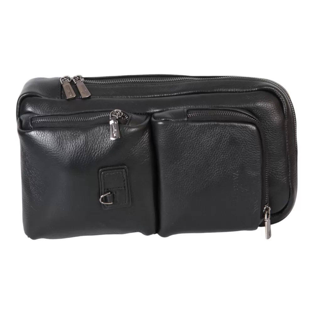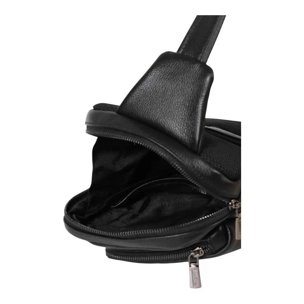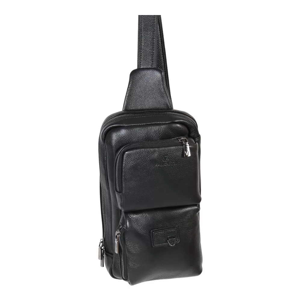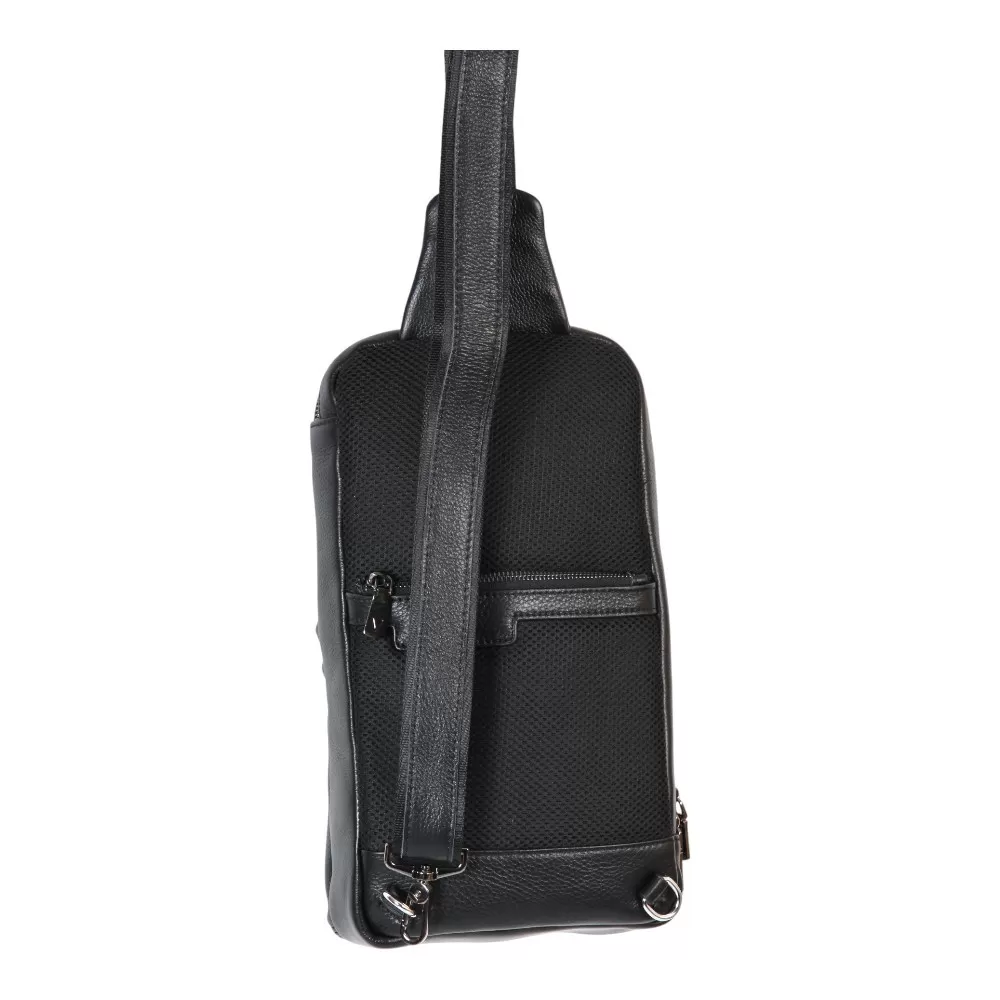 Однолямочный рюкзак от Valigetti черного цвета из натуральной кожи. У модели есть 1 основное отделение на молнии, карман на молнии и открытый карман. На лицевой стороне 2 внешних кармана на молнии. На задней стороне карман для быстрого доступа на молнии.