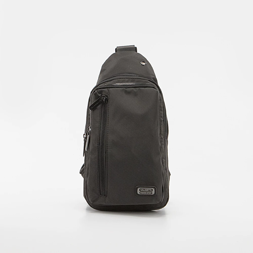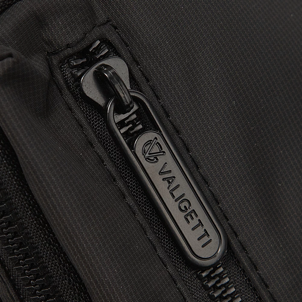 Однолямочный рюкзак от бренда Valigetti из прочного практичного текстильного материала черного цвета с принтом в мелкую клетку. Модель с регулируемой плечевой лямкой с карабином, благодаря чему рюкзак можно носить как на правом, так и на левом плече. Отделение на молнии. Внутри: текстильная подкладка, накладной карман. На лицевой стороне – два кармана на молнии. На задней стороне – карман на молнии.