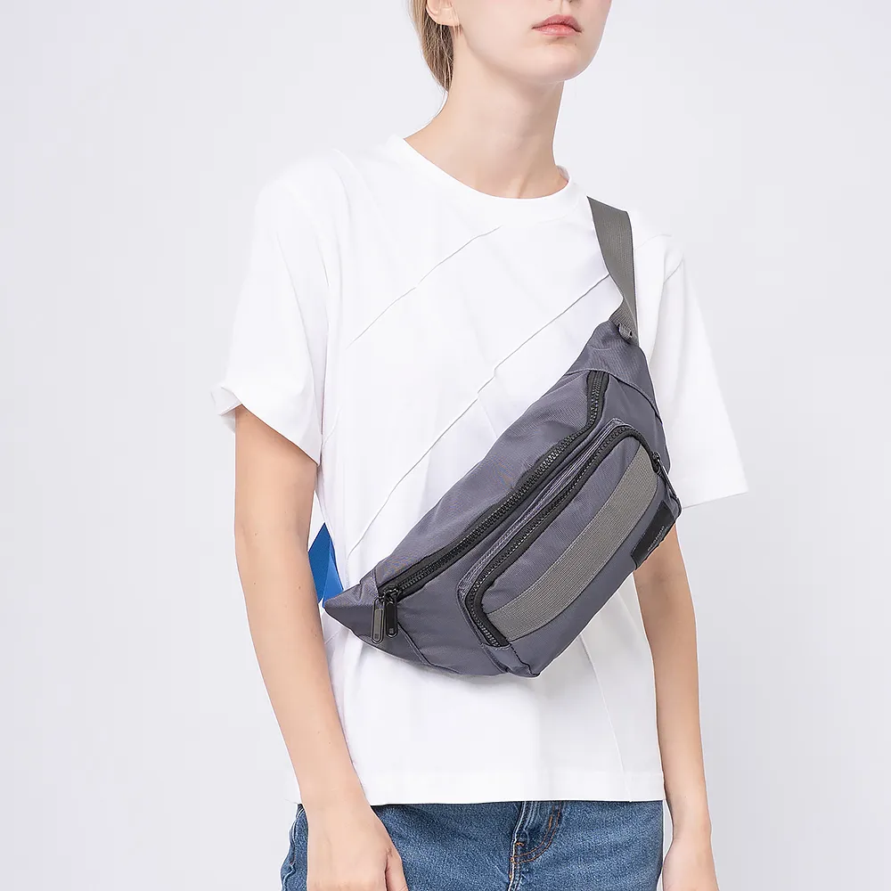 Сумка на пояс от торговой марки Ecotope из текстильного материала серого цвета. Вместительная модель с регулируемым поясным ремнем на застежке фастекс. Отделение на молнии. Внутри: текстильная подкладка. На лицевой стороне - накладной карман на молнии. На задней стороне - карман на молнии.
