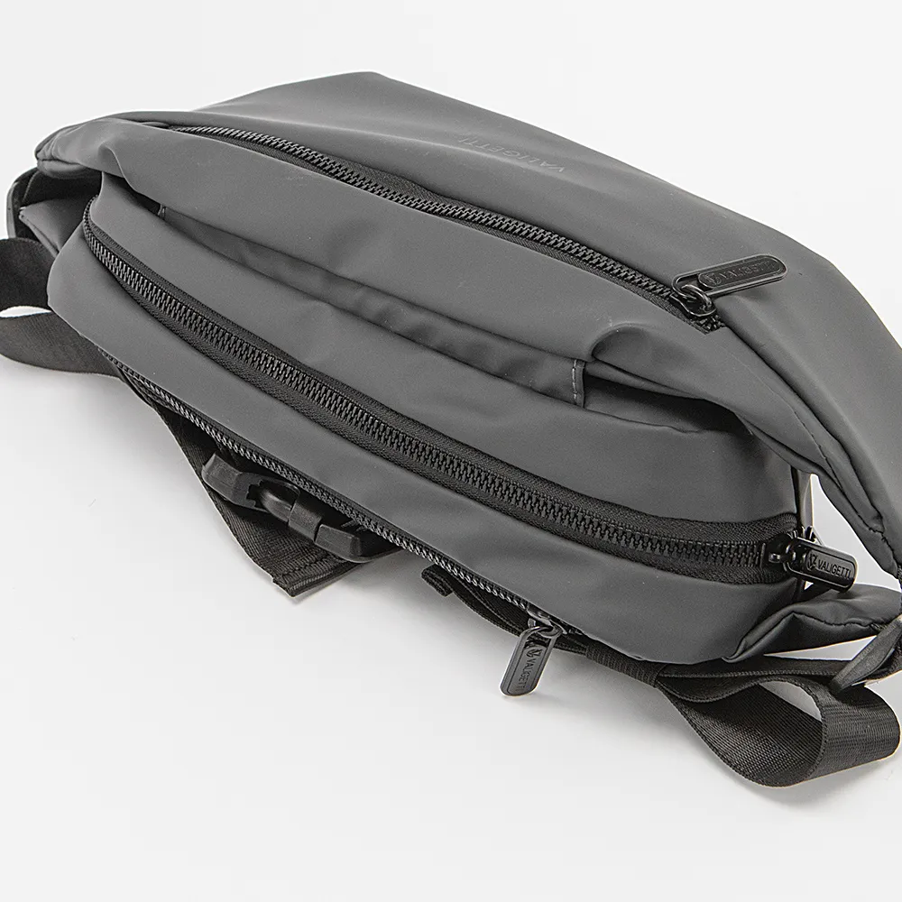 Сумка на пояс от торговой марки Valigetti из прочного практичного непромокаемого текстильного материала цвета хаки. Модель с регулируемым поясным ремнем. Отделение на молнии. Внутри: текстильная подкладка, четыре кармана-сетки. На лицевой и задней сторонах – карман на молнии. Сбоку - место для бутылки.
