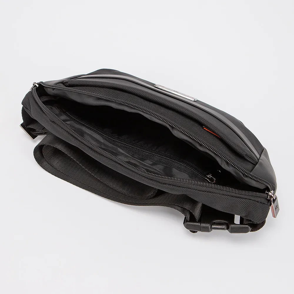 Сумка на пояс от торговой марки Valigetti из практичного текстильного материала серого цвета. Модель с регулируемым поясным ремнем на застежке фастекс. Отделение на молнии. Внутри: текстильная подкладка, карман на молнии. На лицевой стороне - карман на молнии.