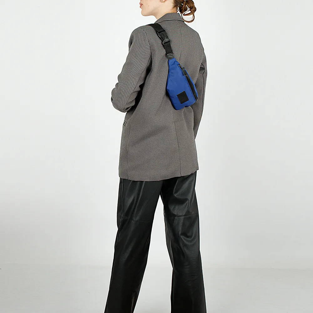 Сумка на пояс от торговой марки Mr.Bag из текстильного материала синего цвета с декоративными вставками из искусственной кожи. Модель с поясным ремнем с застежкой фастекс. Отделение на молнии. Внутри: текстильная подкладка, карман на молнии.