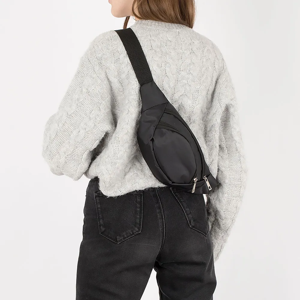 Модная сумка на пояс от торговой марки Mr.Bag выполнена из практичного текстильного материала черного цвета. Модель с поясным ремнем на застежке фастекс, с вентилируемой задней стороной. Отделение на молнии, на лицевой стороне – карман на молнии.
