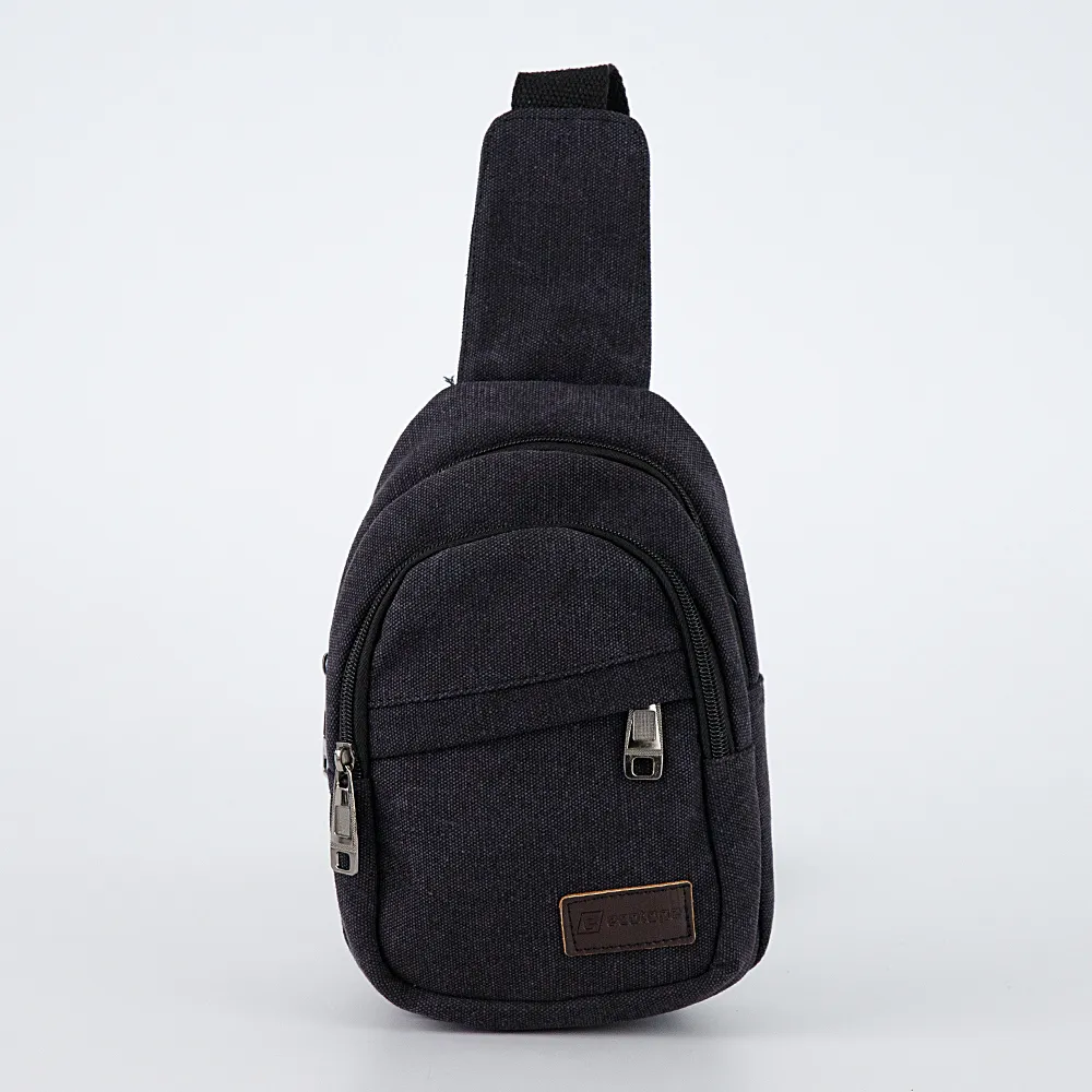 Небольшой повседневный рюкзак Ecotope серого цвета, выполнен из плотной холстяной ткани и имеет одну эргономичную лямку через плечо, можно носить спереди. Рюкзак с двумя независимыми отделениями на молниях, чтобы всё самое необходимое всегда было под рукой. Оснащён металлическим люверсом для наушников.