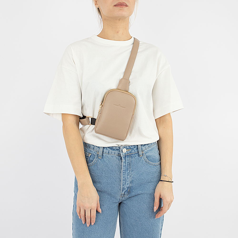 Однолямочный рюкзак от торговой марки Passo Avanti из искусственной кожи бежевого цвета. Компактная модель с регулируемой несъемной лямкой. Два отделения на молнии, с текстильной подкладкой. В каждом из отделений – накладной карман, в переднем – три накладных кармана для карт.