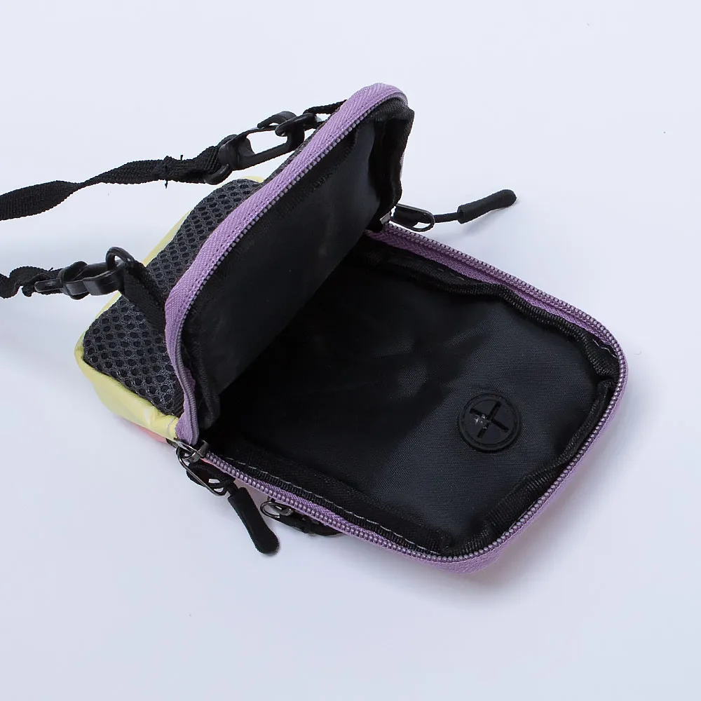 Сумка на пояс от торговой марки Ecotope из практичного текстильного материала в сочетании сиреневого и персикового цвета. Модель со съемным плечевым ремешком и лямкой для ношения на плече. Отделение на молнии. Внутри: текстильная подкладка, отвесртие для наушников. Задняя сторона с дышащим сетчатым слоем. На лицевой стороне имеются светоотражатели.