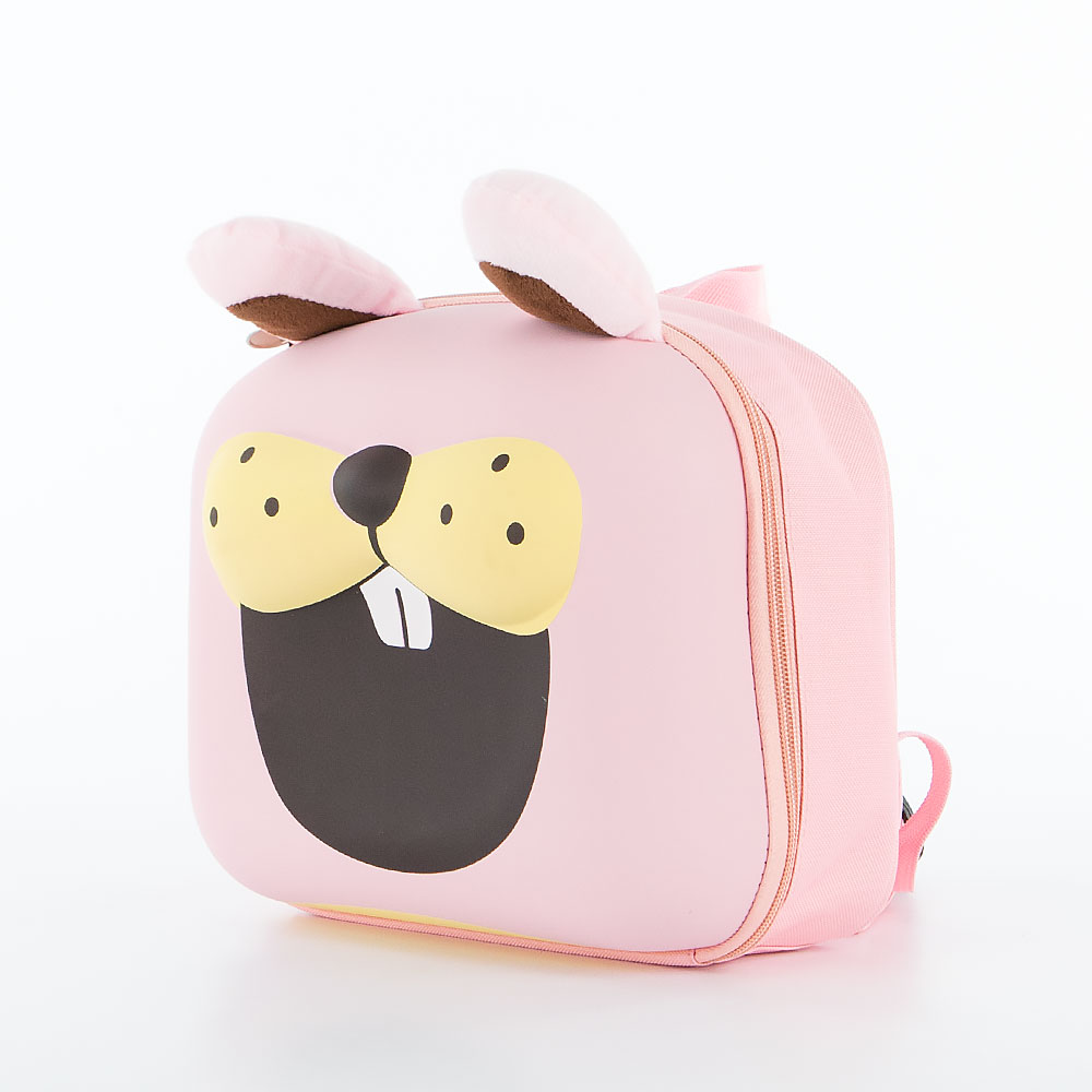 Детский рюкзак от торговой марки Ecotope из текстильного материала розового цвета в виде бобра с формованной лицевой панелью. Модель с лямкой-переноской, регулируемыми плечевыми лямками. Отделение на молнии. Внутри: текстильная подкладка, накладной карман-сетка. Спинка с дышащим сетчатым верхним слоем.