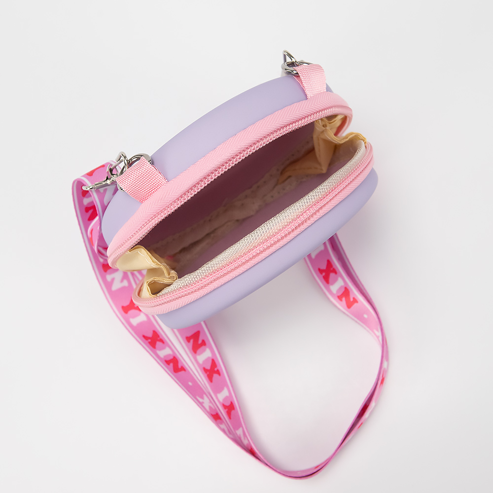 Детская сумочка от торговой марки Passo Avanti сиреневого цвета. Жесткая модель в форме круга. Модель со съемным регулируемым плечевым ремнем. Отделение на молнии с двумя встречными бегунками и оригинальными яркими пуллерами. Внутри: без подкладки.