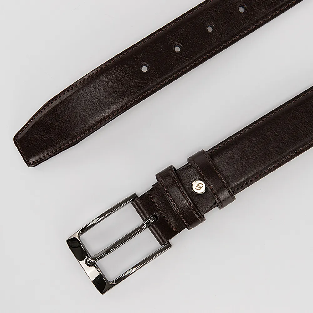 Классический ремень под брюки от торговой марки Francesco Molinary из натуральной кожи коричневого цвета. Модель шириной 35 мм, длина 111-115 см; с металлической пряжкой, с двумя шлевками для дополнительной фиксации.