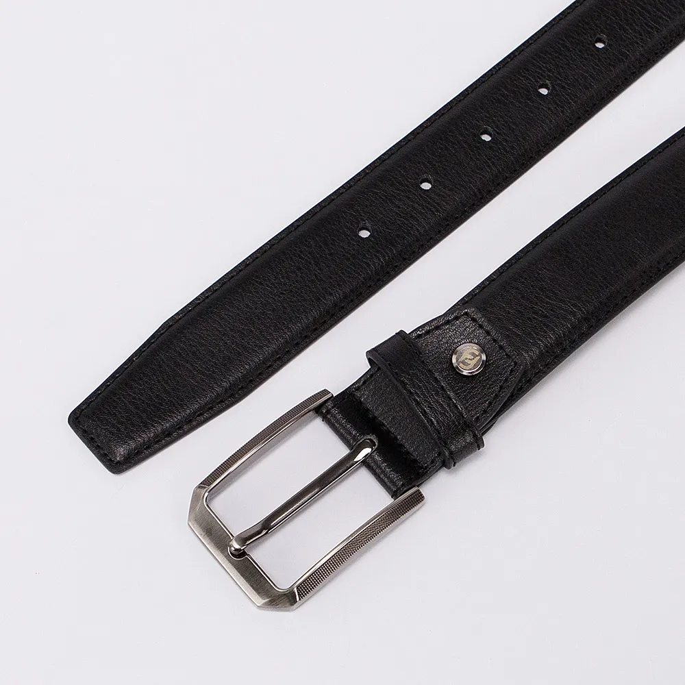 Кожаный ремень от Francesco Molinary украшен металлической матовой пряжкой с тиснением. Ремень имеет чёрный матовый цвет, с оборотной стороны светлый. Оснащён кожаной шлёвкой для дополнительной фиксации с тиснением бренда, на конце ремень трапециевидной формы. Подойдёт к любым брюкам. Модель длиной 105-110 см и шириной 3,3 см.