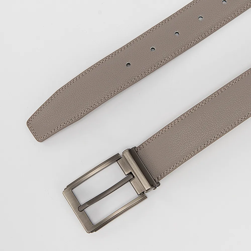 Мужской ремень от торговой марки Francesco Molinary из натуральной кожи светло-серого цвета. Модель с металлической пряжкой и шлевкой, двойной строчкой по краям; ширина: 3,3 см, длина: 105-110 см.