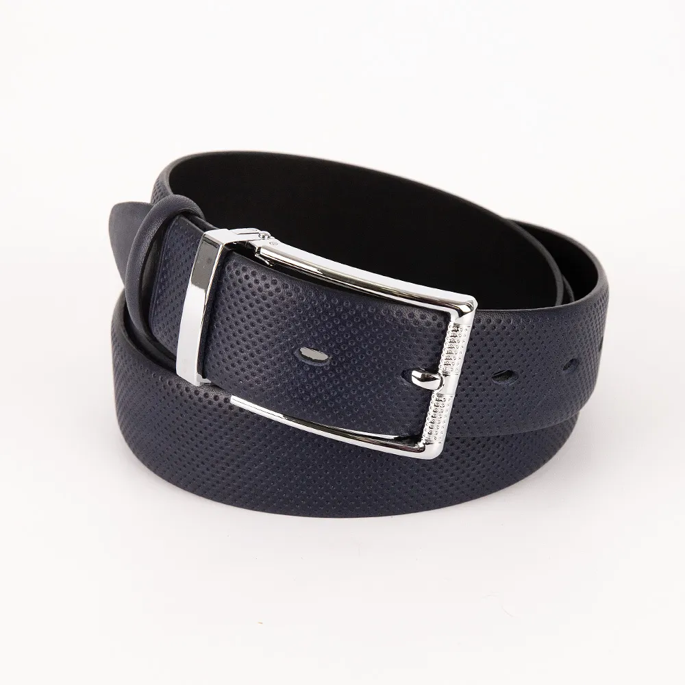 Ремень от торговой марки Mayer изготовлен из натуральной кожи синего цвета с точечной перфорацией. Модель шириной 35 мм, длиной до 110 см.