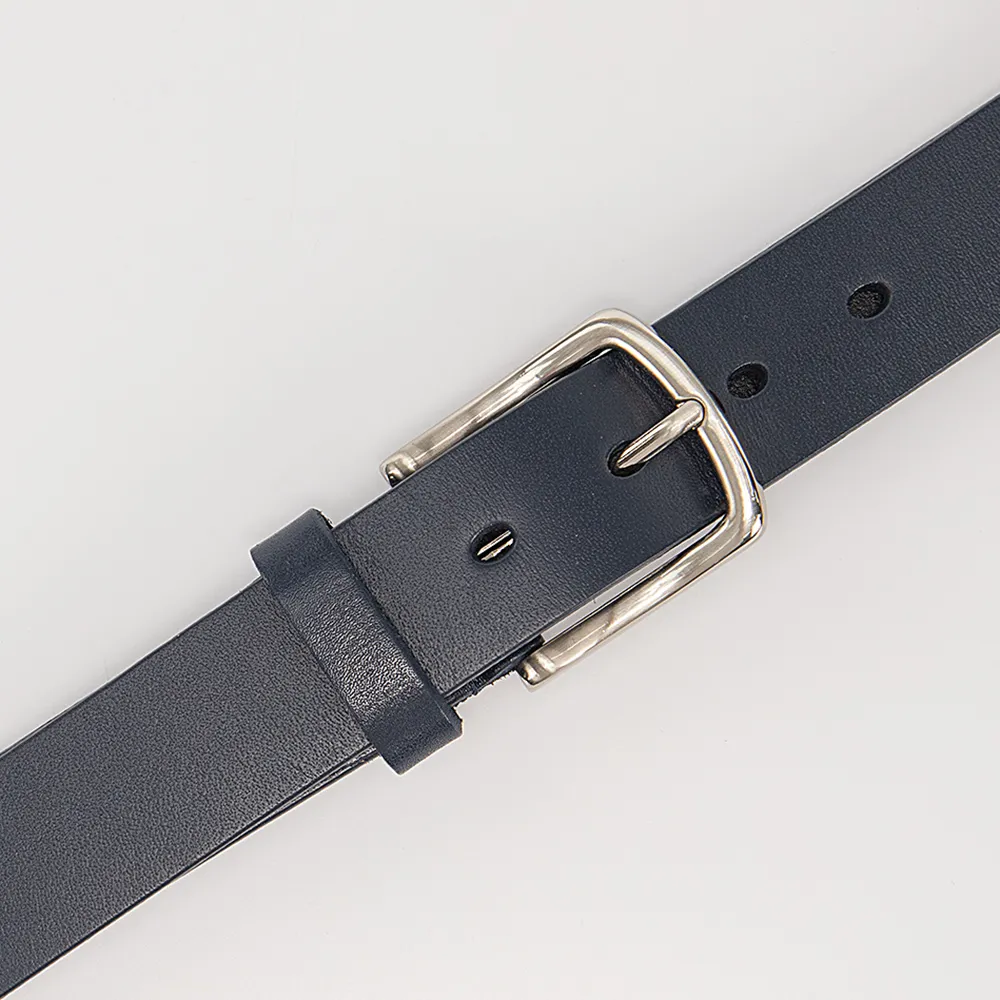Ремень от торговой марки Poshete из натуральной кожи темно-синего цвета. Модель длиной 111-115 см, шириной 3,5 см. Металлическая пряжка; шлевка для фиксации.