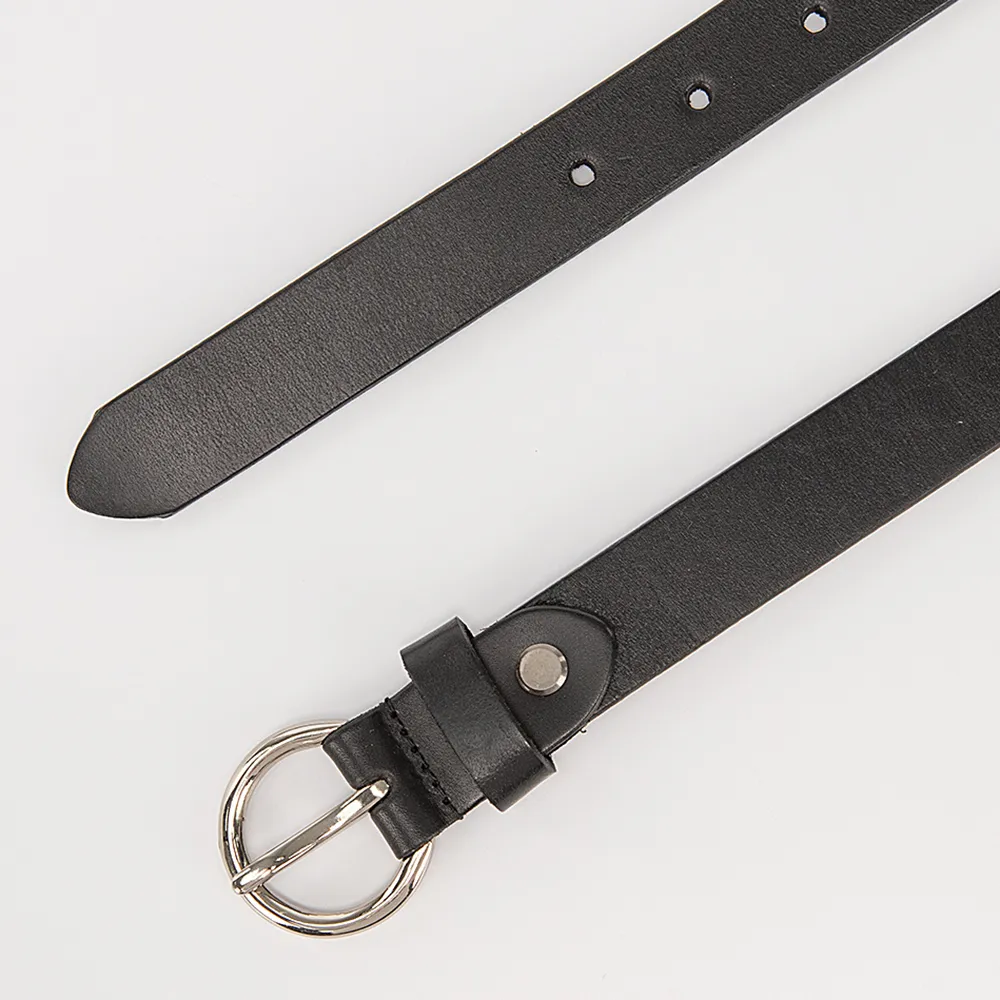 Ремень от торговой марки Poshete из натуральной кожи ярко-коричневого цвета. Модель длиной 106-110 см, шириной 2,5 см. Металлическая пряжка круглой формы; шлевка для фиксации.