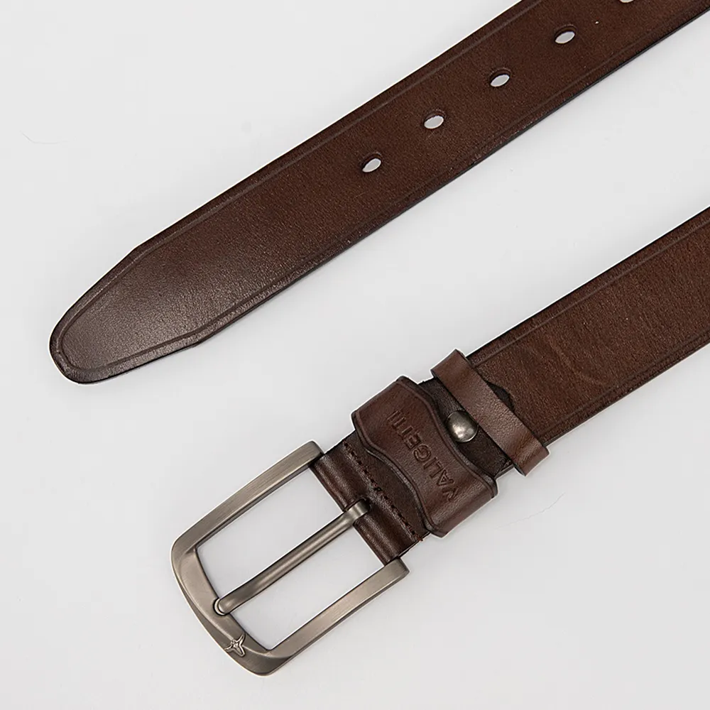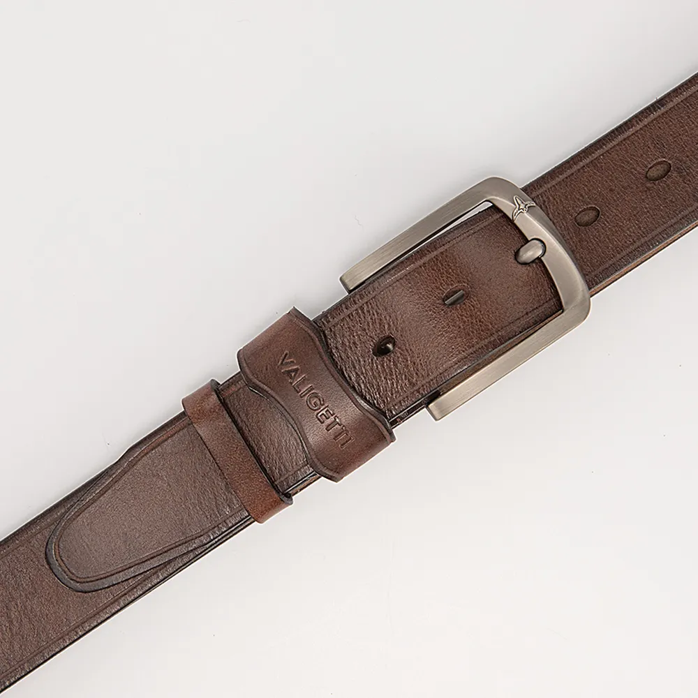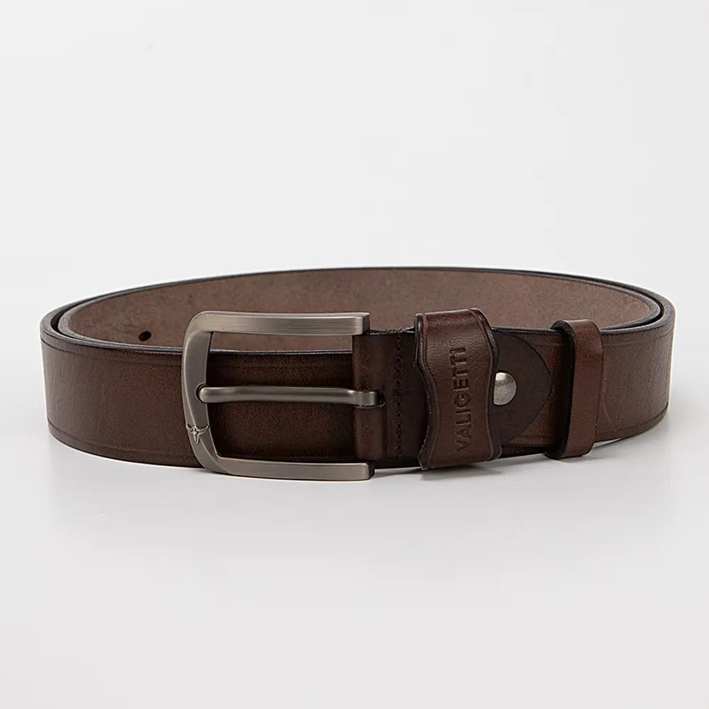 Мужской ремень от торговой марки Valigetti из натуральной кожи коричневого цвета. Модель с металлической пряжкой, декорированной гравировкой. Ширина – 3,8 см, длина – 130 см. Размер: L.
