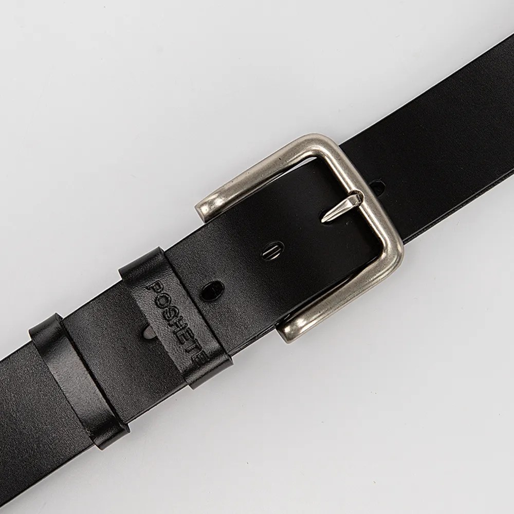 Мужской ремень от торговой марки Poshete из натуральной кожи. Модель шириной 4,5 см, длиной 114-116 см. Размер: M. Металлическая пряжка, две шлевки.