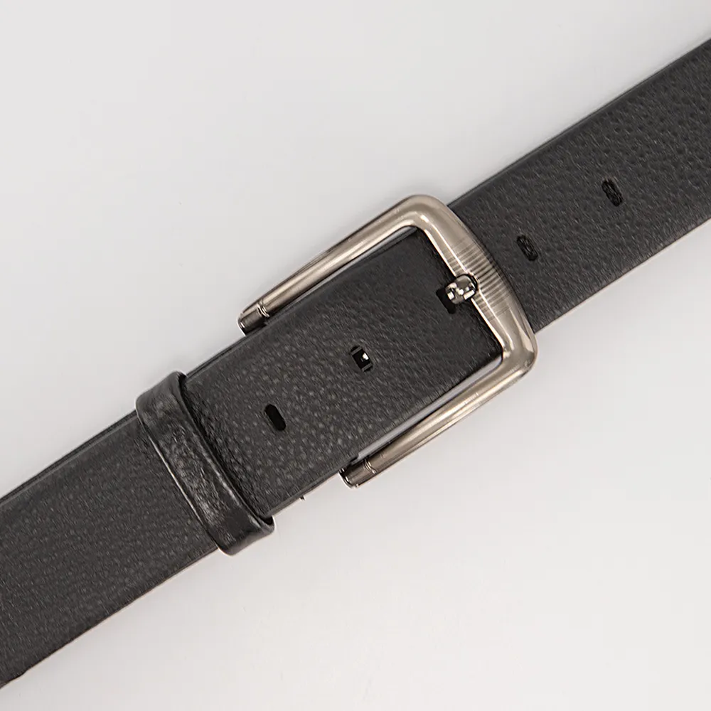 Мужской ремень от торговой марки Poshete из натуральной кожи черного цвета. Модель с металлической пряжкой, двумя шлевками для фиксации. Ширина – 3,8 см, длина – 115 см. Размер: M.