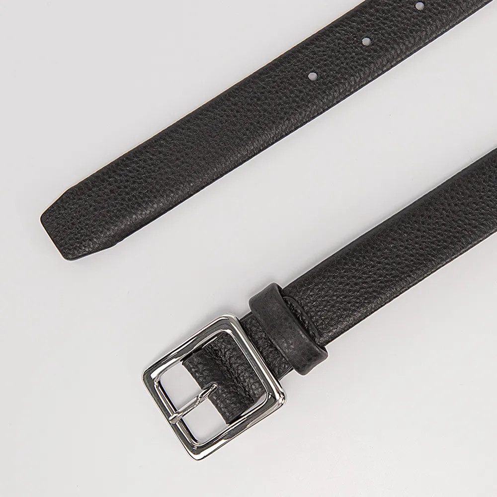 Женский ремень от торговой марки Poshete из натуральной зернистой кожи черного цвета. Модель с квадратной металлической пряжкой. Ширина – 3 см, длина – 115 см. Размер: L.