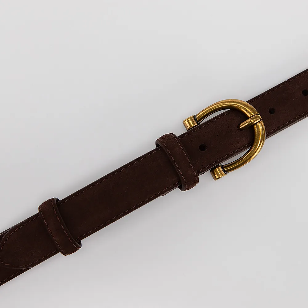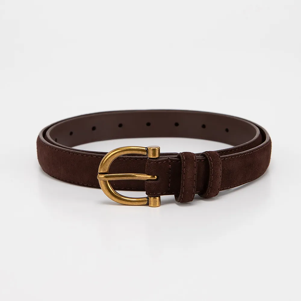 Женский ремень от торговой марки Poshete из натуральной замши. Модель шириной 2,5 см, длиной 95-105 см. Размер: S. Металлическая пряжка, две шлевки. Декорирован отстрочкой.