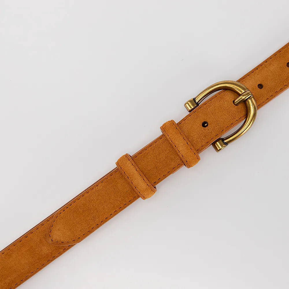 Женский ремень от торговой марки Poshete из натуральной замши. Модель шириной 2,5 см, длиной 95-105 см. Размер: S. Металлическая пряжка, две шлевки. Декорирован отстрочкой.