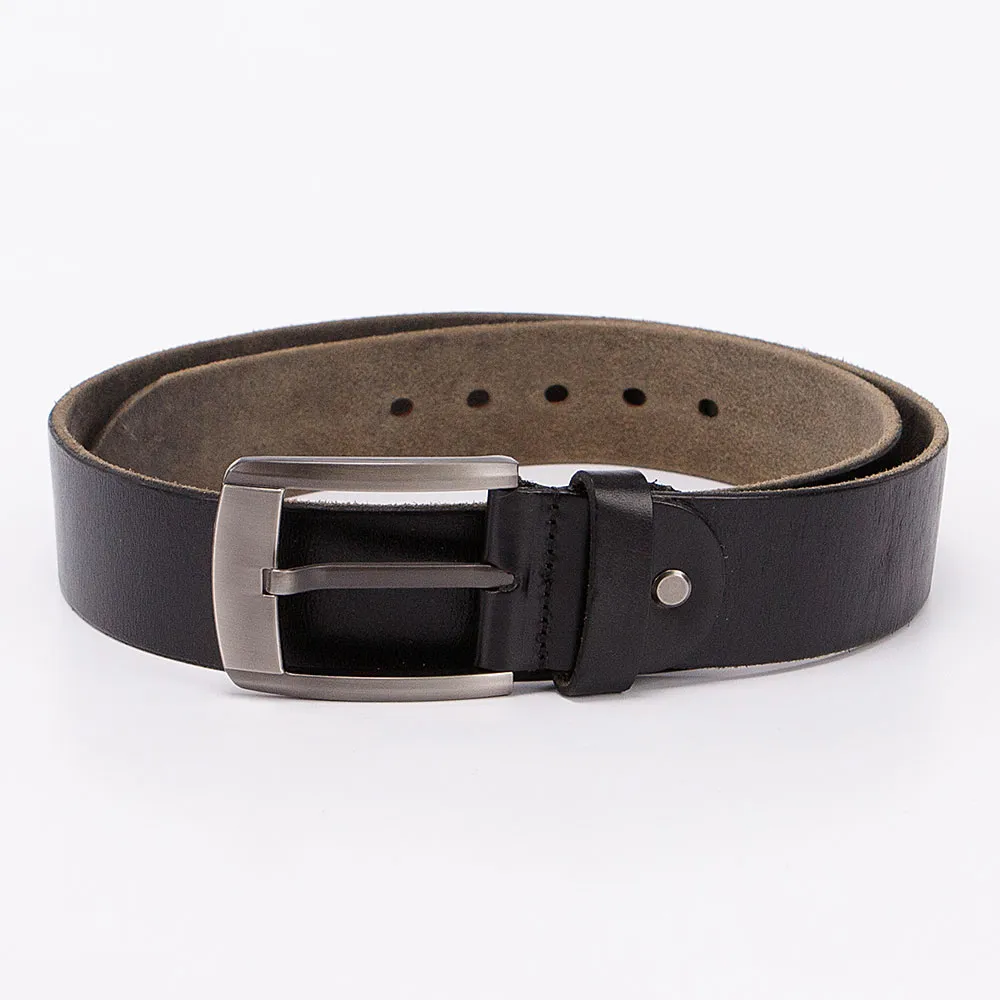 Стильный мужской ремень от бренда Poshete выполнен из натуральной толстой кожи, с оборотной стороны замшевый. Ремень коричневого цвета, ширина 4 см, длина 105-110 см. Стальная квадратная пряжка с «язычком», одна шлёвка и классические отверстия для фиксации объёма, на конце овальной формы.