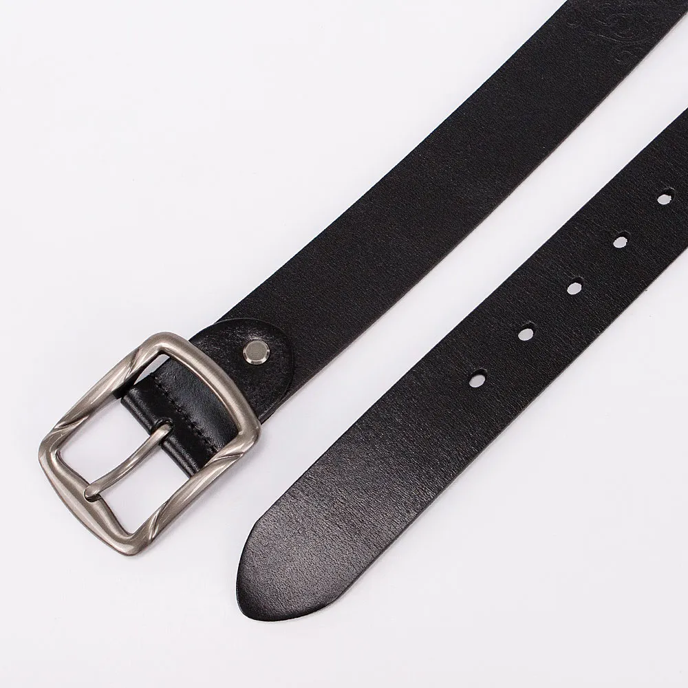 Стильный женский ремень от бренда Poshete выполнен из натуральной толстой кожи и украшен орнаментальным тиснением. Ремень чёрного цвета, ширина 4 см, длина 95-105 см. Стальная квадратная пряжка с «язычком», без шлёвки и классические отверстия для фиксации объёма, на конце овальной формы.