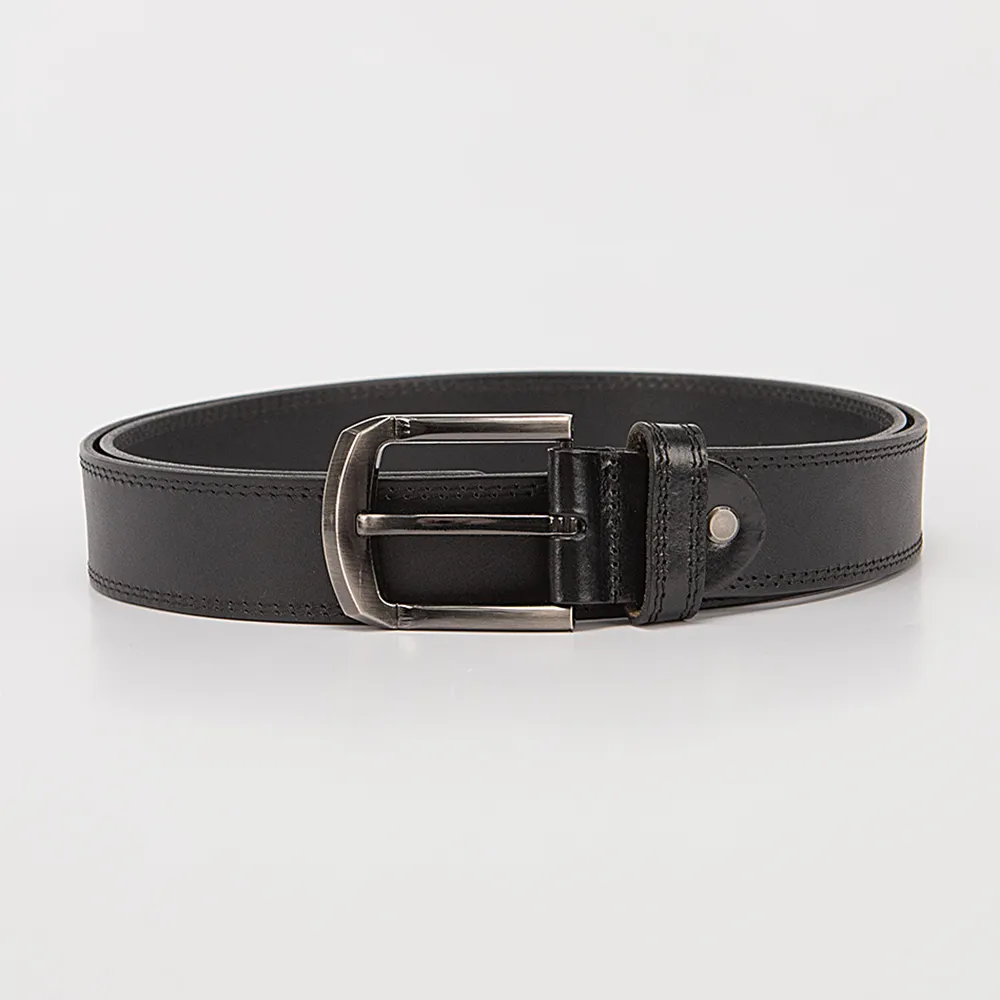 Прочный мужской ремень, прошит двойной строчкой, выполнен из натуральной кожи цвета camel и представлен брендом Poshete. Подойдёт к брюкам или джинсам. Пряжка металлическая, матовая с язычком. На ремне стандартные отверстия и кожаный держатель для дополнительной фиксации. На конце ремень полукруглой формы. Отличается своей длиной.