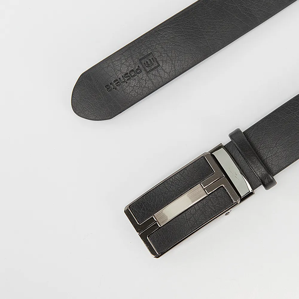 Ремень Poshete из натуральной матовой кожи чёрного цвета, хорошо подойдёт к тёмным брюкам и джинсам. Пряжка автомат металлическая, блестящего чёрного цвета с вставкой из такой же кожи. Ремень также оснащён шлёвкой для дополнительной фиксации. Ремень супер длинный с шириной 4 см.